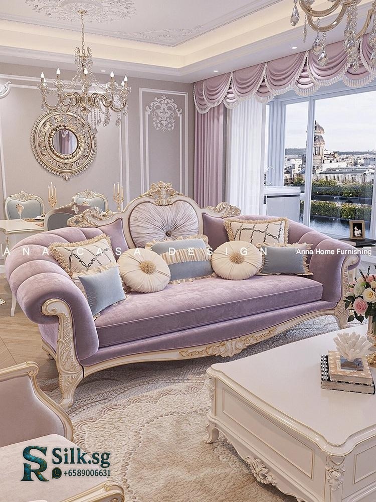 Premium French Light Luxury Palace Style Solid Wood Carved Fabric Sofa, Large Living Room High-end Villa Luxury Three-Seater Combination for modern lifestyles. Designed for comfort, durability, and everyday use. {‘Storage Space Included’: ‘No’, ‘Styl