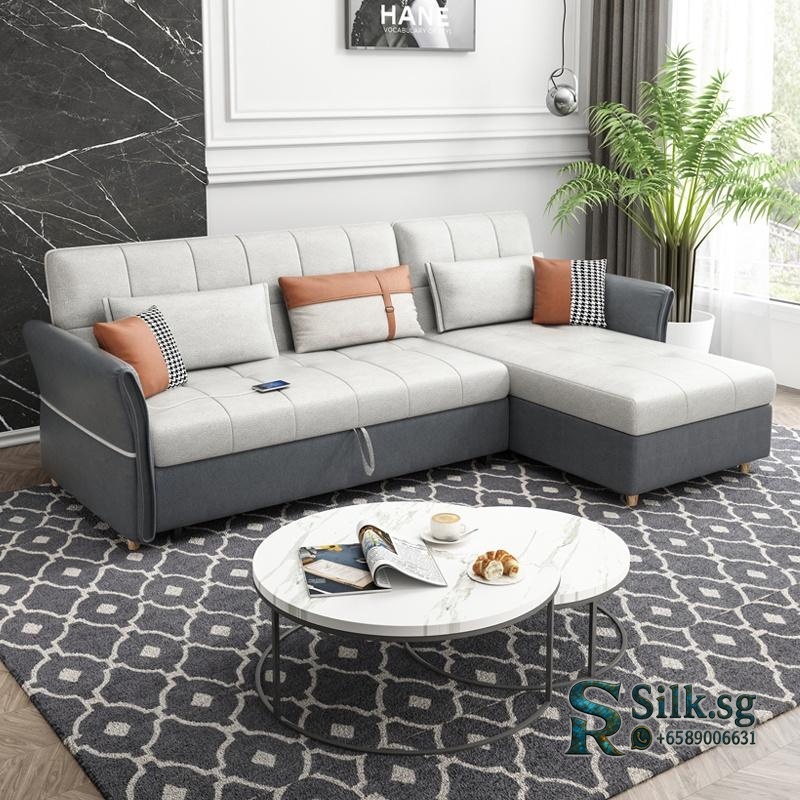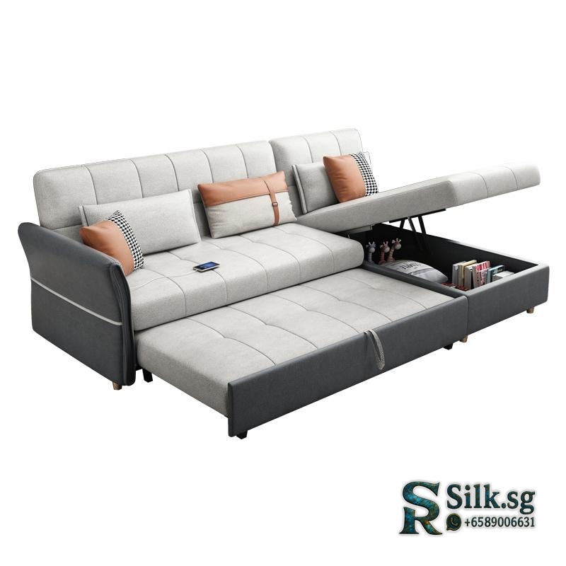 Yongjia – Nordic Linen Sofa Bed with Storage, L – Shaped Convertible