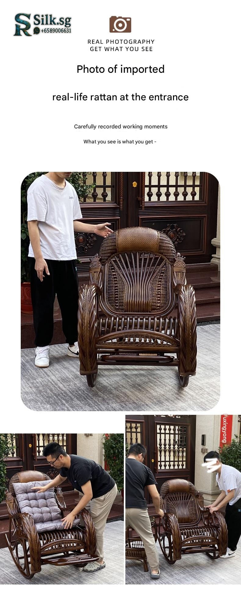 Premium Natural Rattan Rocking Chair for Elderly, Living Room Rest, Nap, Balcony, Home Use, Indonesian Rattan Adult Rocking Chair for modern lifestyles. Designed for comfort, durability, and everyday use. {‘Gross Weight’: ’20KG’, ‘Style’: ‘New Chines