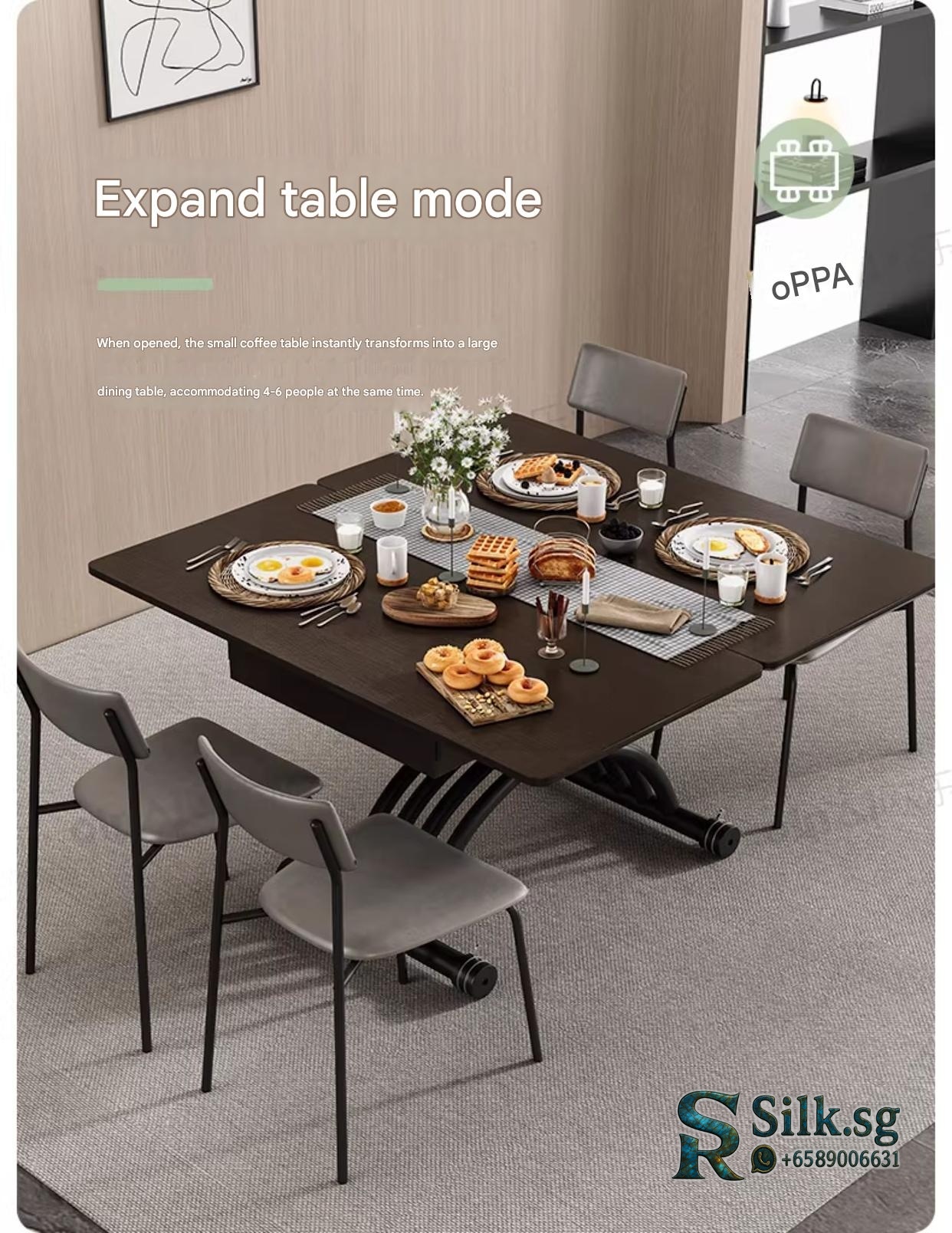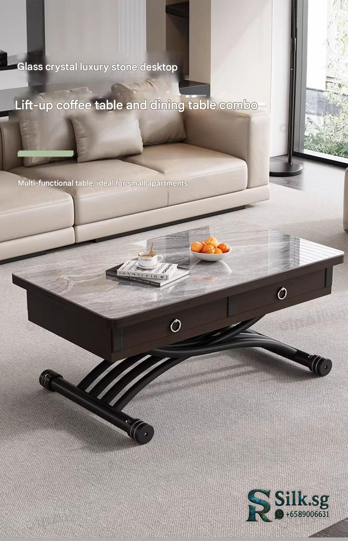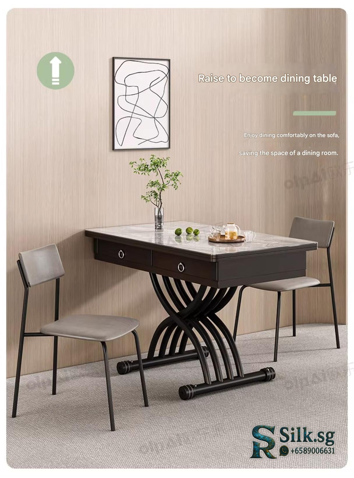 Maximize your small space with this dual-purpose lift coffee table. It effortlessly transforms into a dining table and includes handy storage drawers, perfect for apartments or cozy living rooms. Experience instant versatility and modern style that adapts to your life.