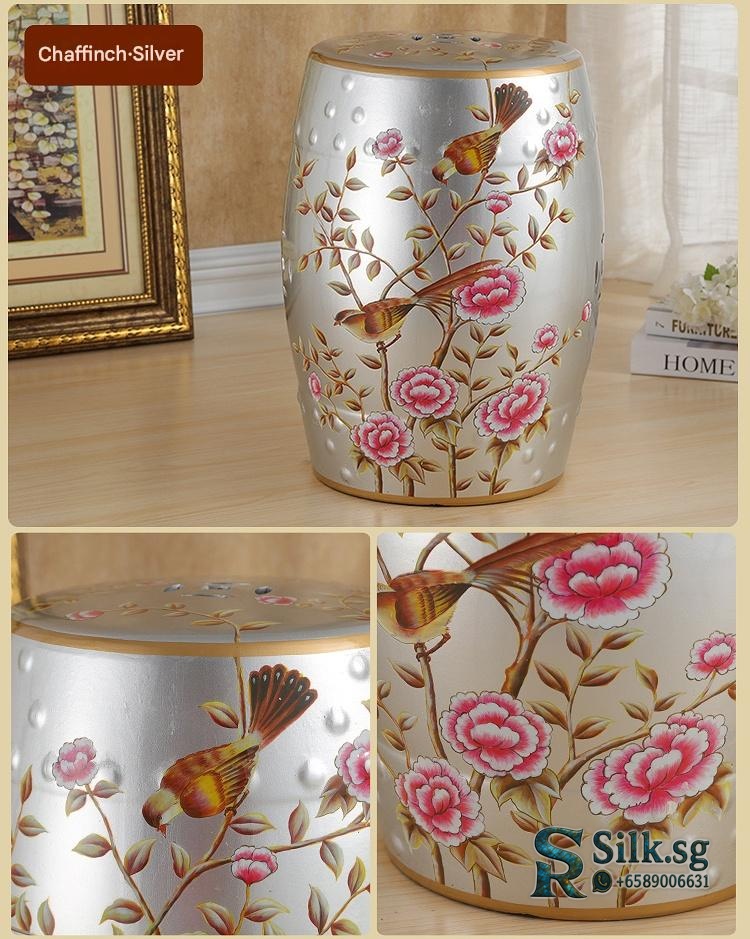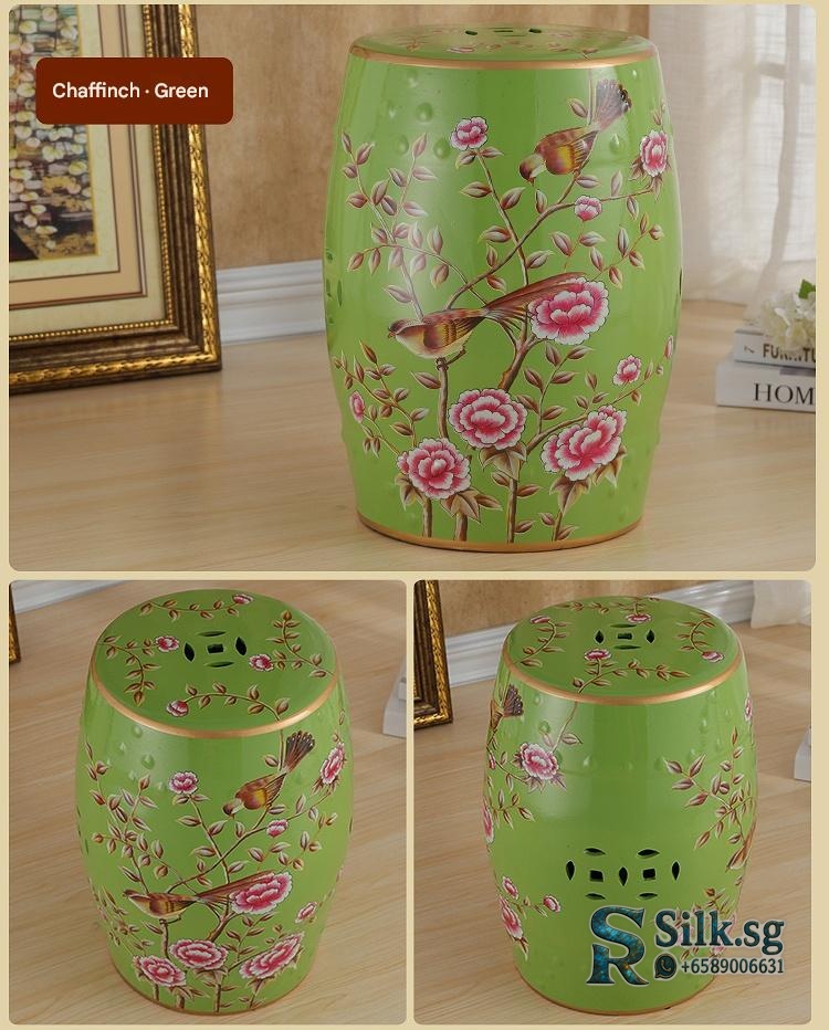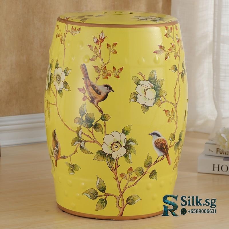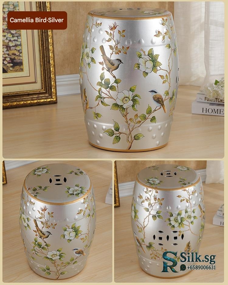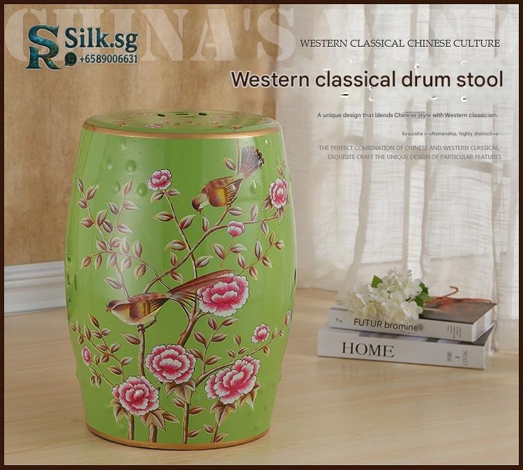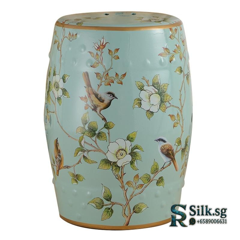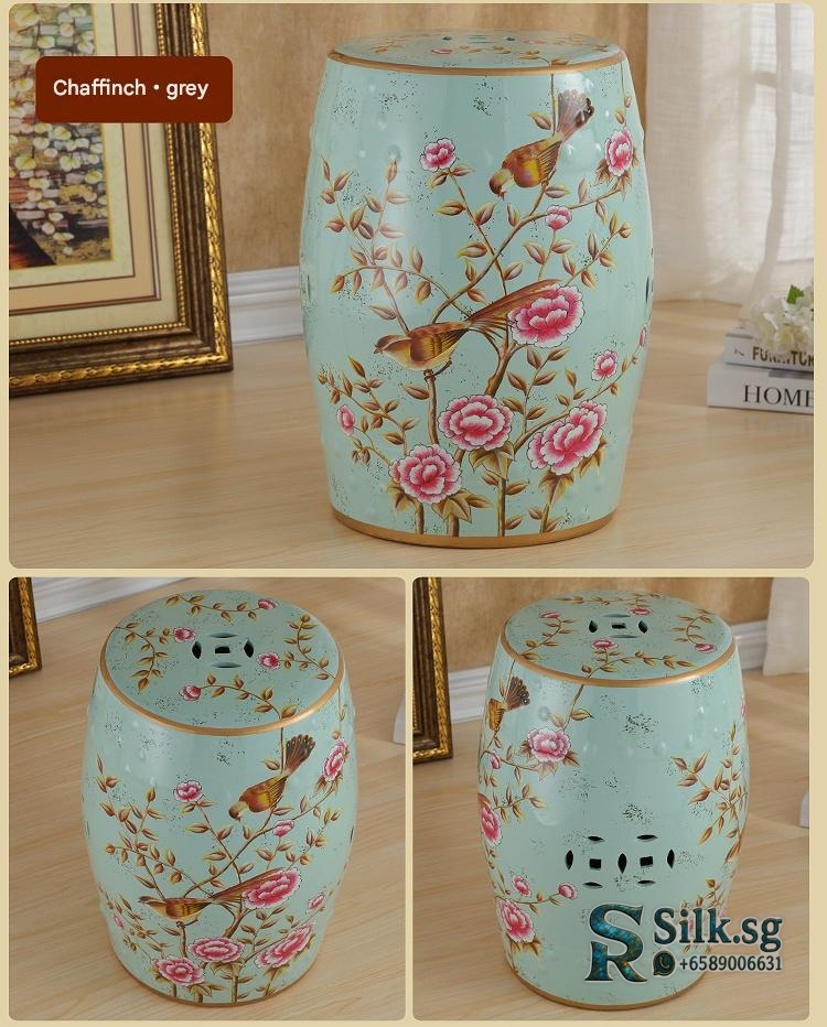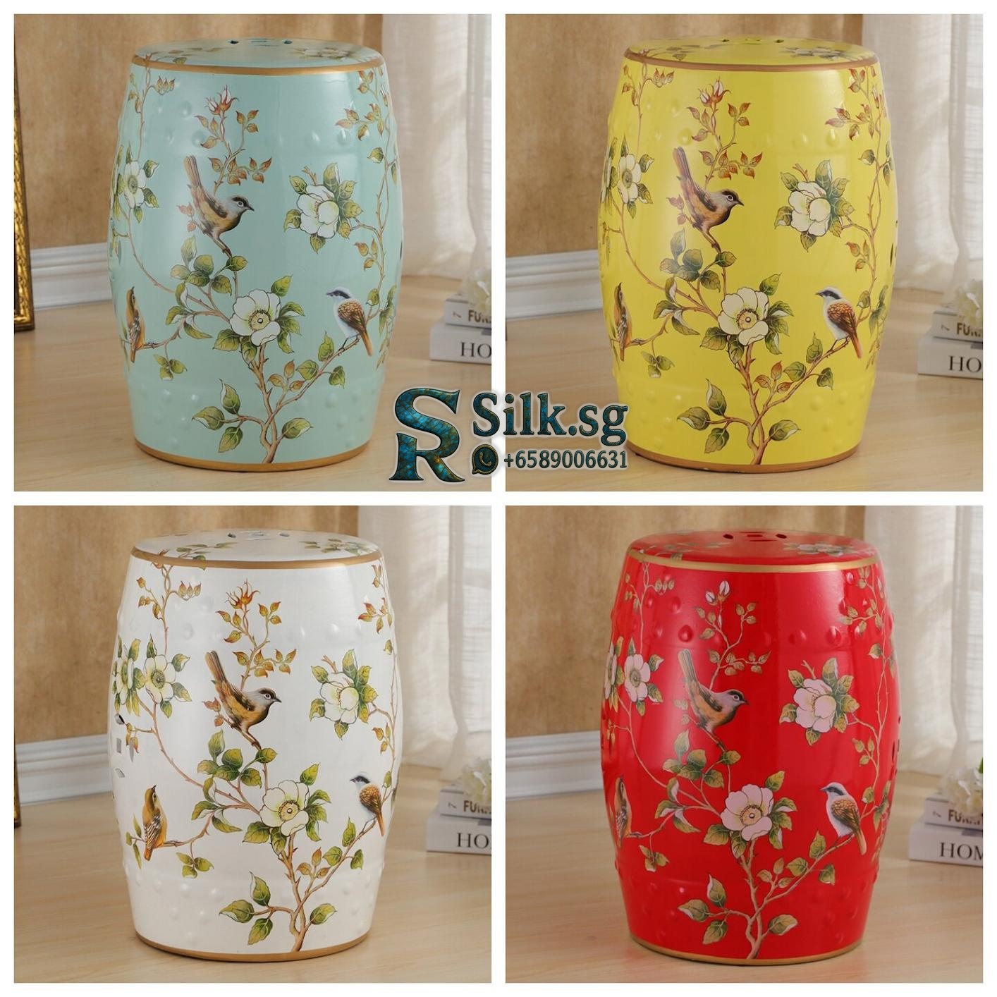 OTY001 – Hand – Painted Ceramic Drum Stool with Floral Bird Patterns