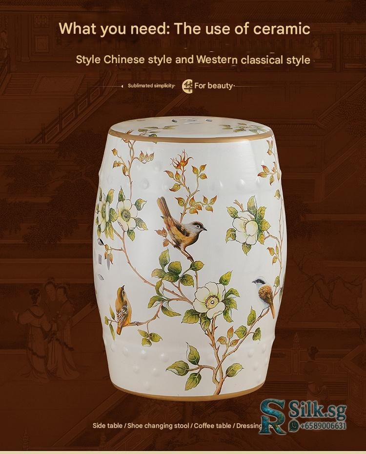 Premium American/European/New Chinese-French Style Dressing Stool/Shoe Changing Stool/Bird-and-Flower Ceramic Drum Stool/Ceramic Drum Seat/Embroidery Stool/Ceramic Sitting Stool for modern lifestyles. Designed for comfort, durability, and everyday us