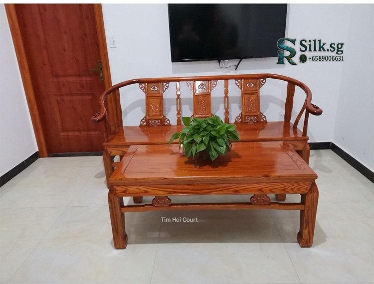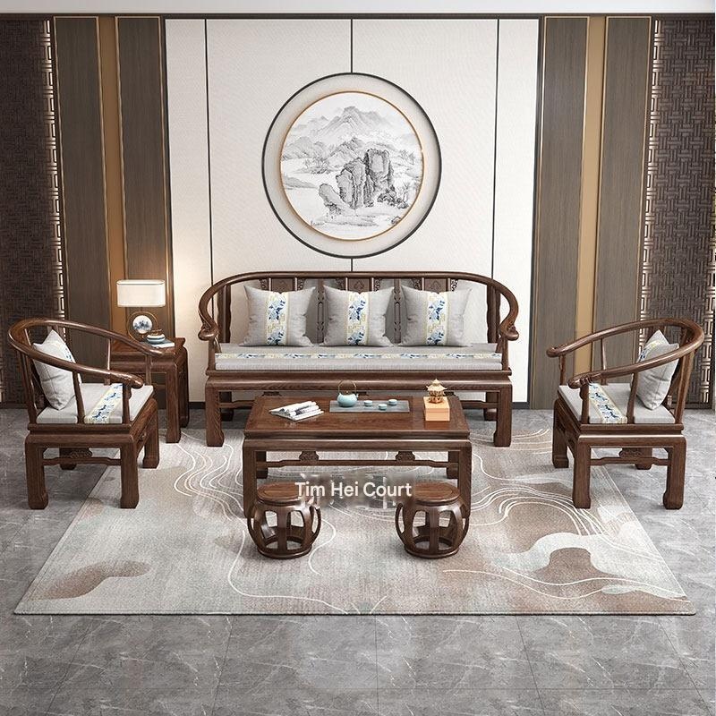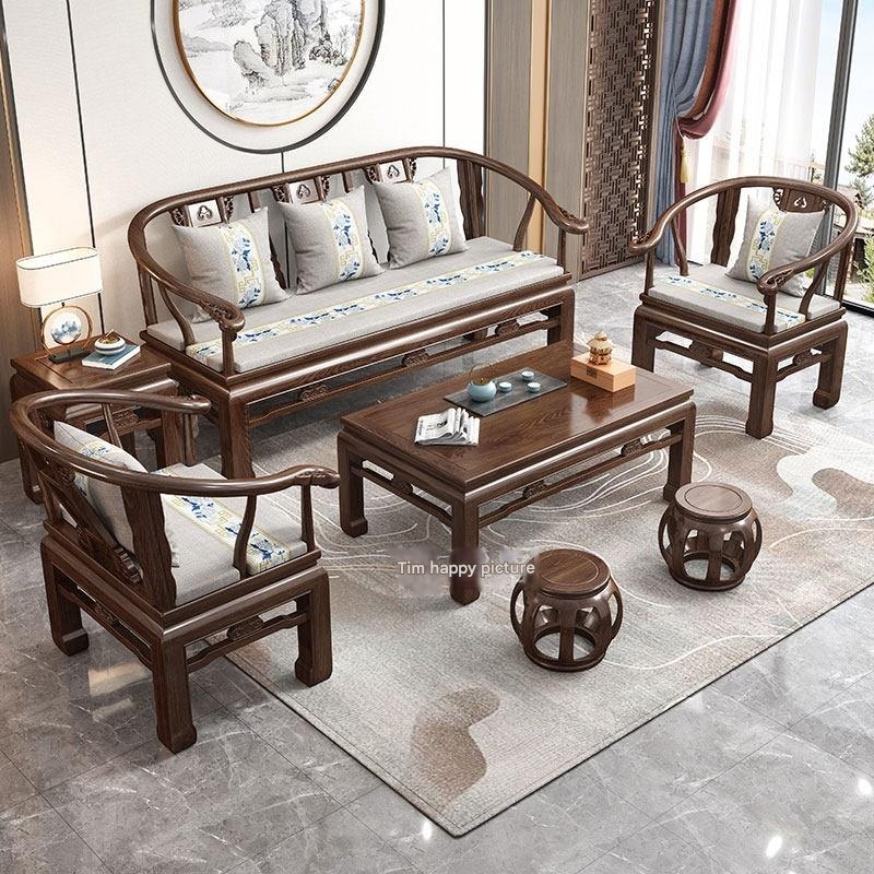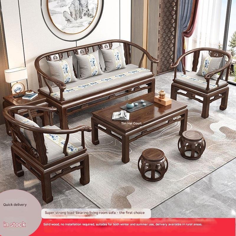 ElmWood – Chinese Modern Minimalist Solid Wood Sofa Set for Small Apar