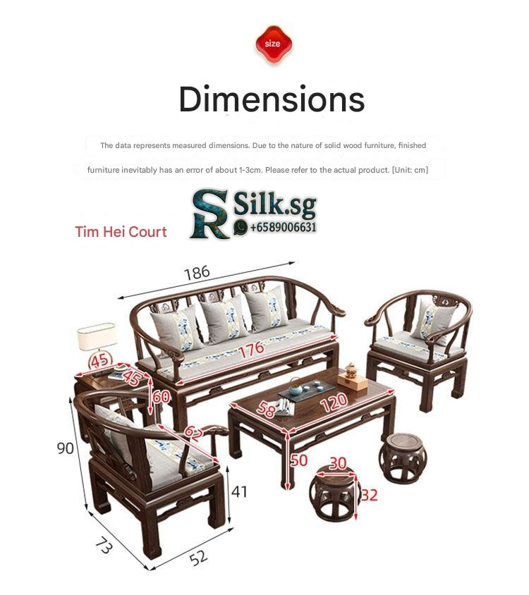 | Color | 3-Seater + Large Coffee Table, 5-Piece Set + 2 Stools, Chestnut without Stool, Elegant 3-Piece Set, Elegant Antique without Stool, Festive Rosewood without Stool, Rosewood 5-Piece Set with Cushions & Pillows, Rosewood 7-Piece Set with Cushions & Pillows, Rosewood without Stool, Walnut 5-Piece Set with Cushions & Pillows, Walnut 7-Piece Set with Cushions & Pillows |