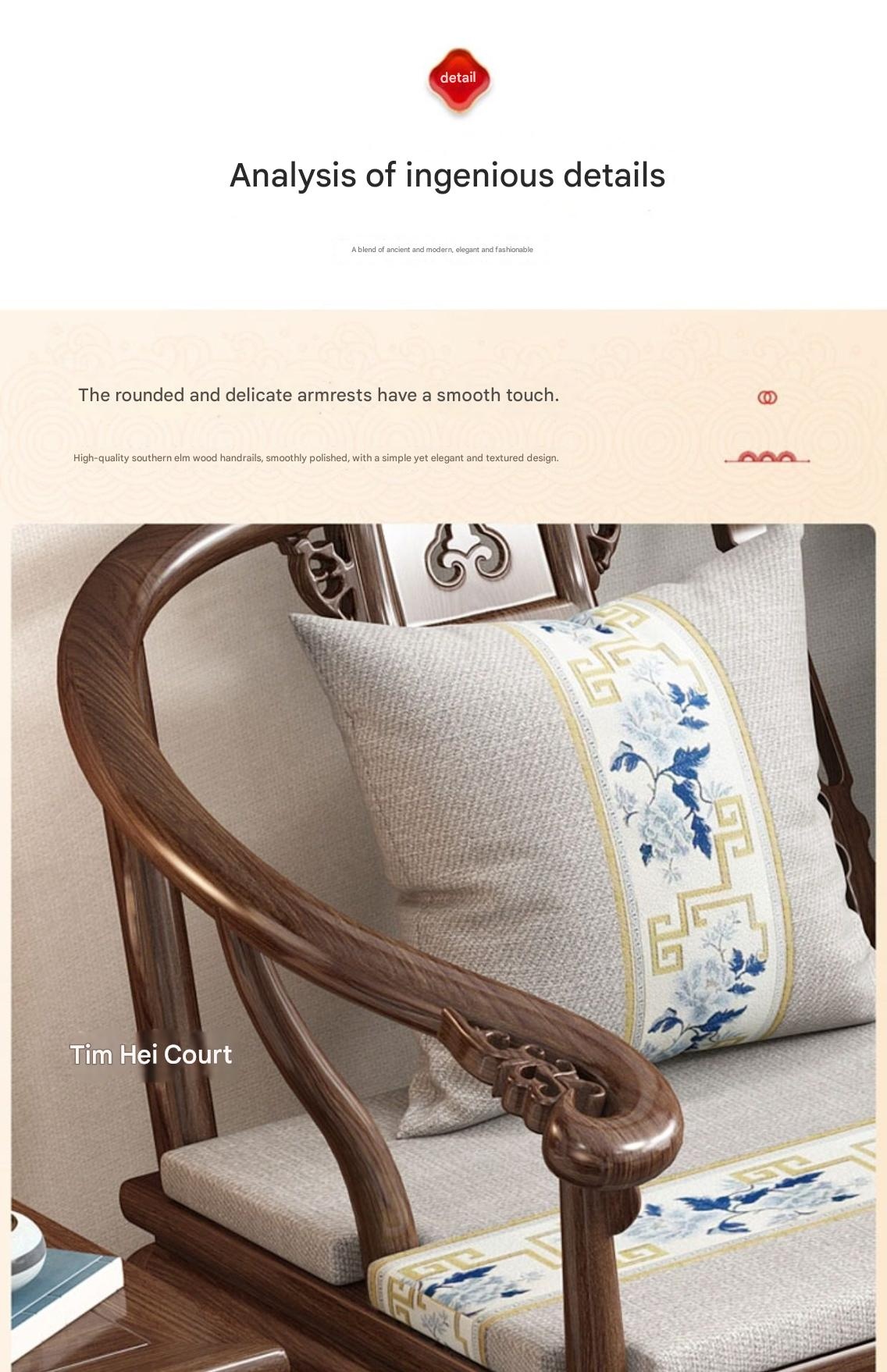Experience the timeless elegance of this solid wood sofa set, featuring durable elm wood and a hand-carved floral pattern. Its compact U-shape design maximizes space, making it perfect for small apartments or cozy living rooms. Bring a touch of serene, modern Chinese style into your home today.