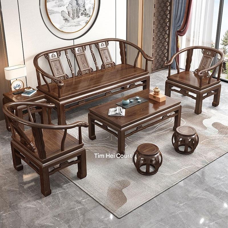 ElmWood – Chinese Minimalist Solid Wood Sofa Set for Small Living Room