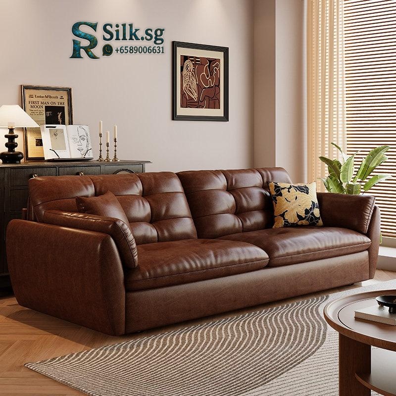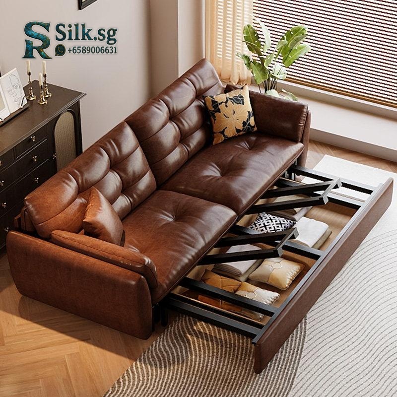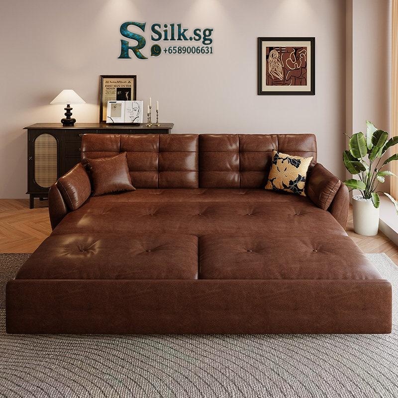 Yabeishi – Mid – Century Oil Wax Leather Sofa Bed, Foldable Multi – Fu