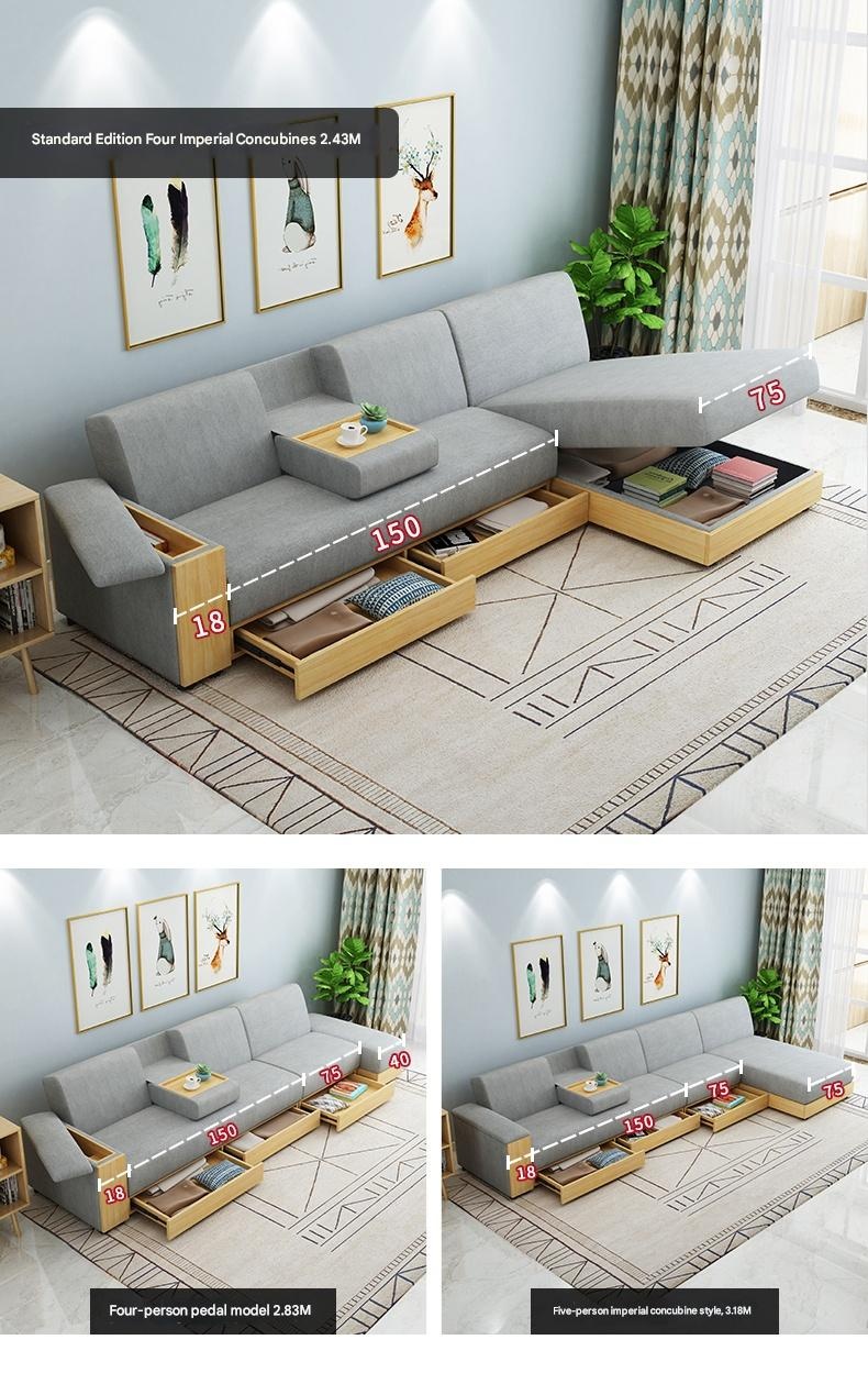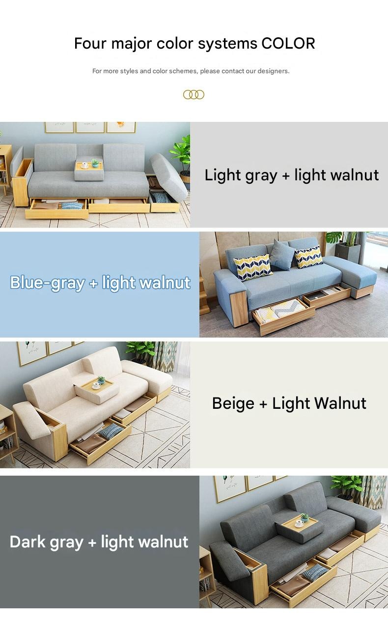 Yongjia – Nordic Linen Sofa Bed with Storage, L – Shaped Convertible