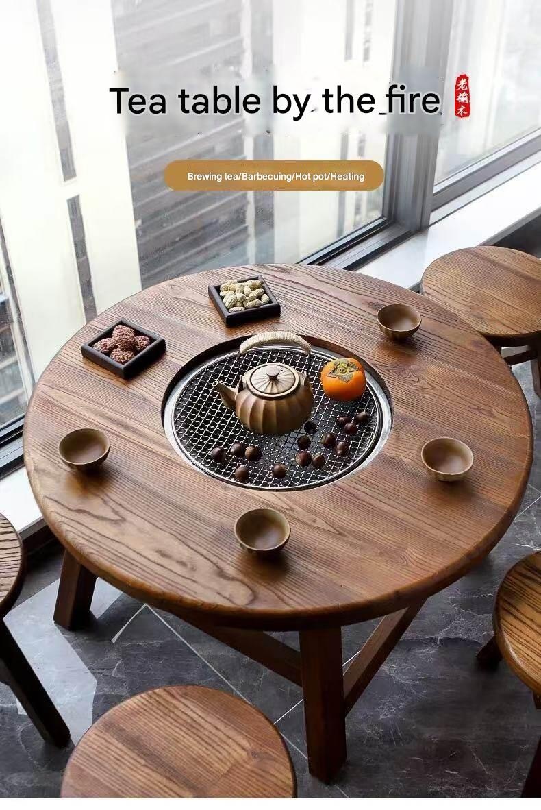 Enjoy cozy outdoor gatherings with this vintage solid wood tea table, perfect for brewing and sharing hot pots or barbecues. Its charming raw wooden design adds warmth and style, making every moment memorable. Elevate your outdoor experience today.