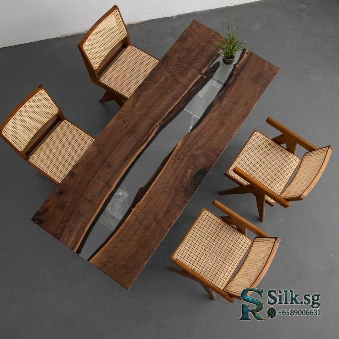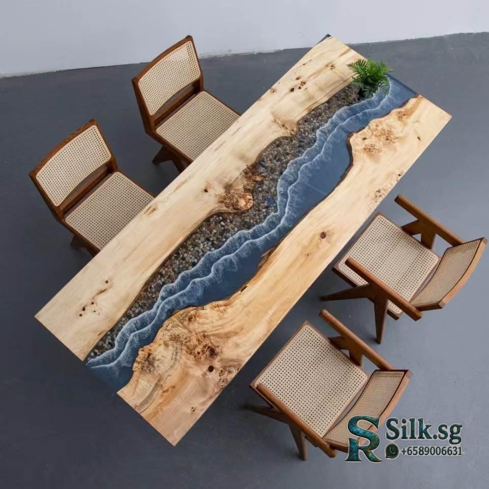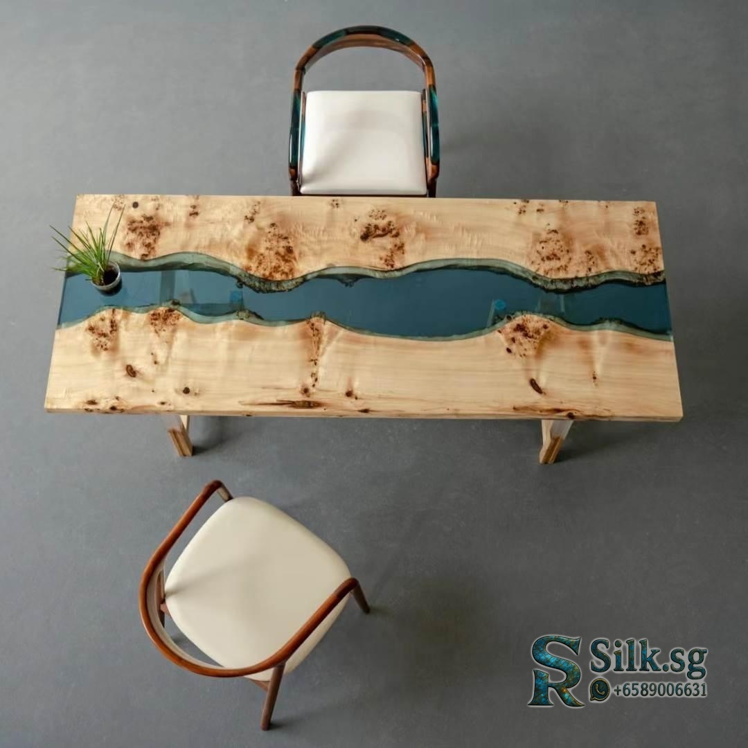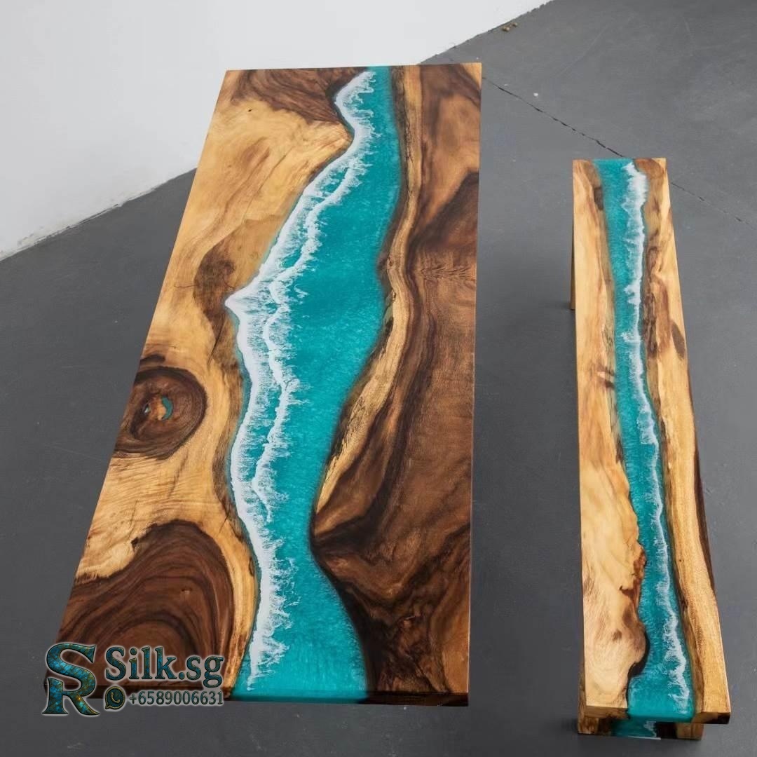 ArtisanCraft – Custom Resin River Table with Solid Wood Slab, 1.8m Cof