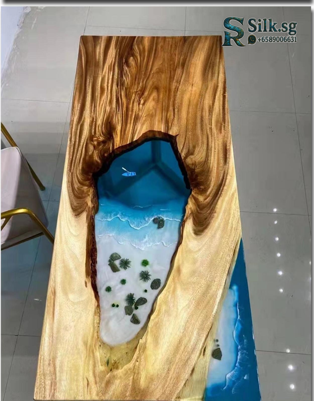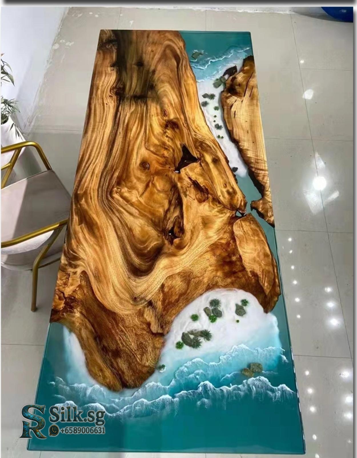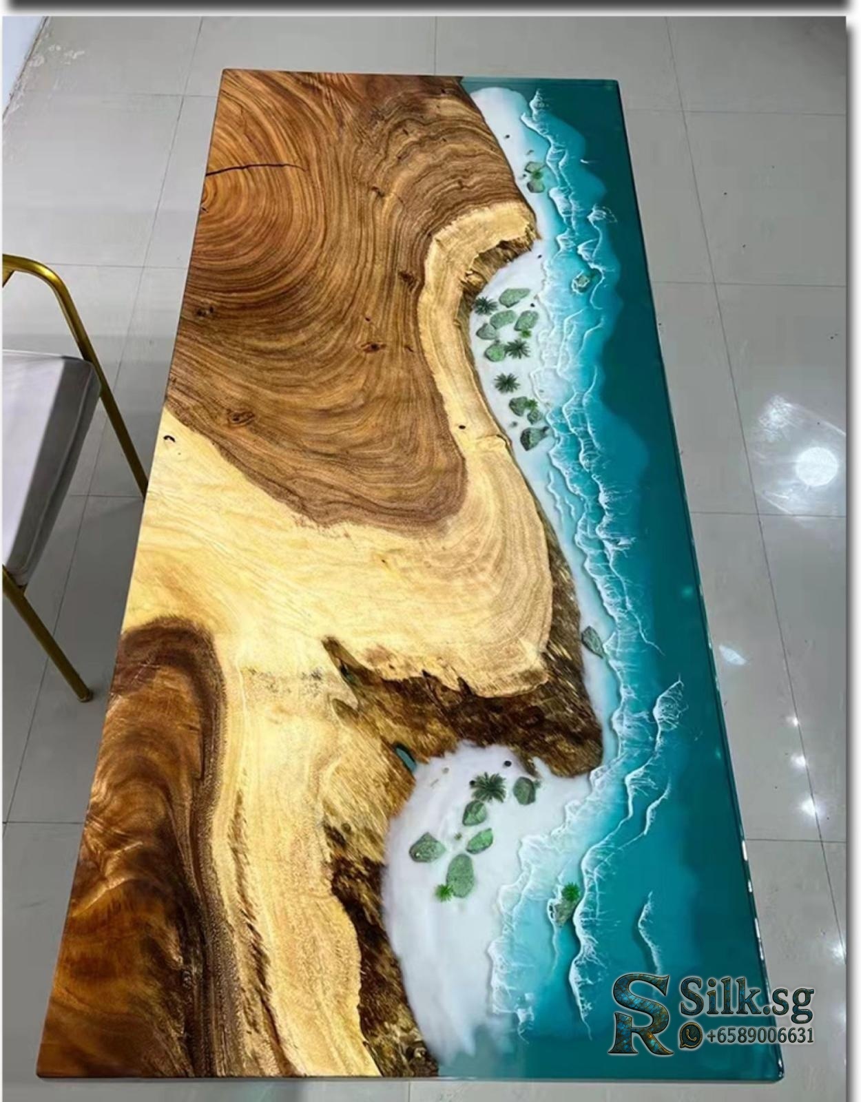 ArtisanCraft – Custom Resin River Table with Solid Wood Slab, 1.8m Cof