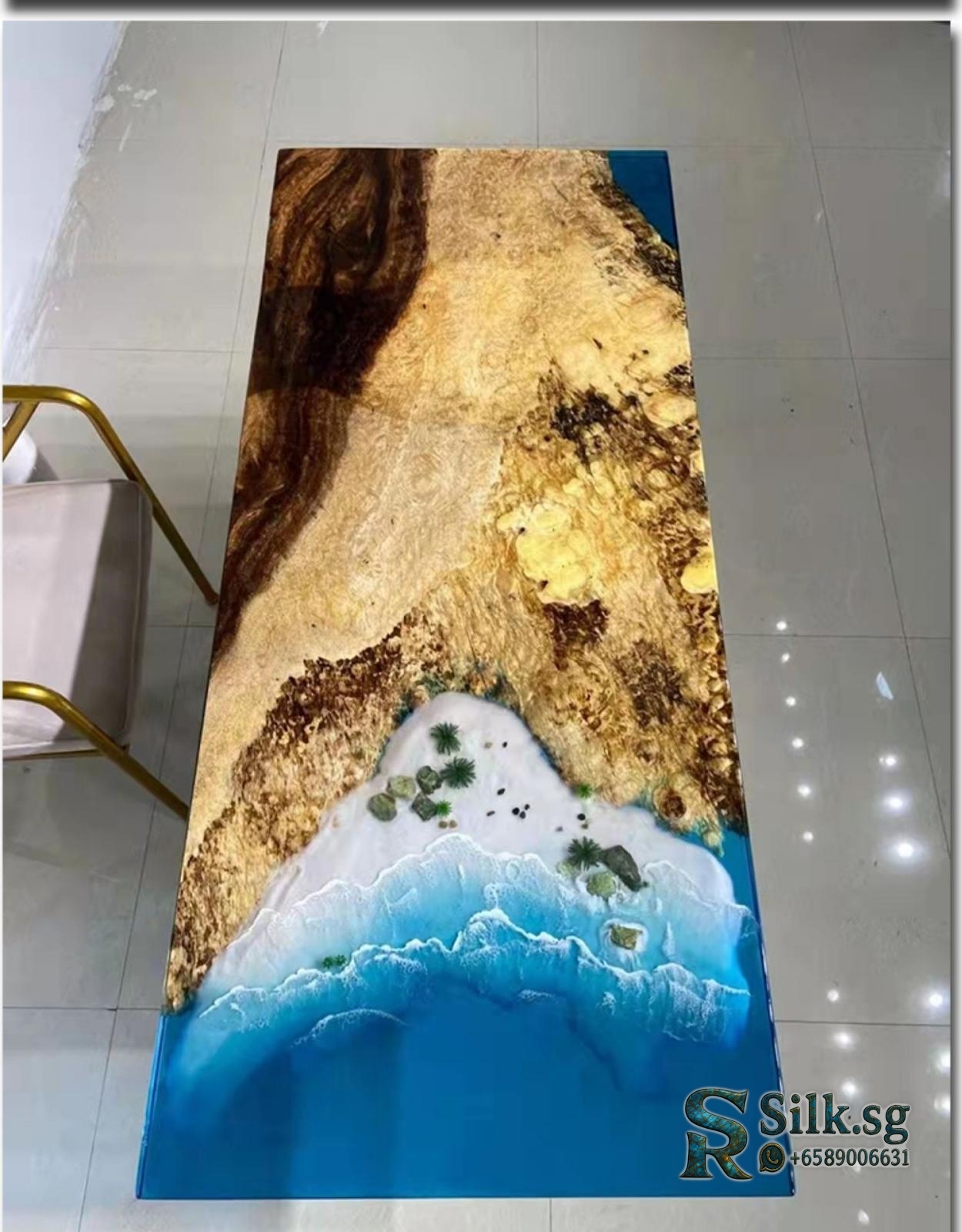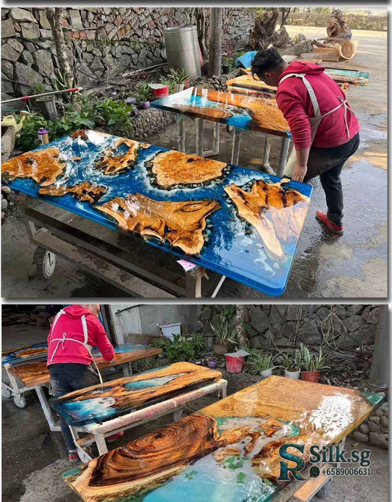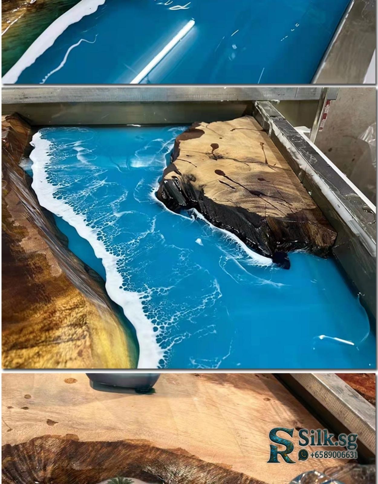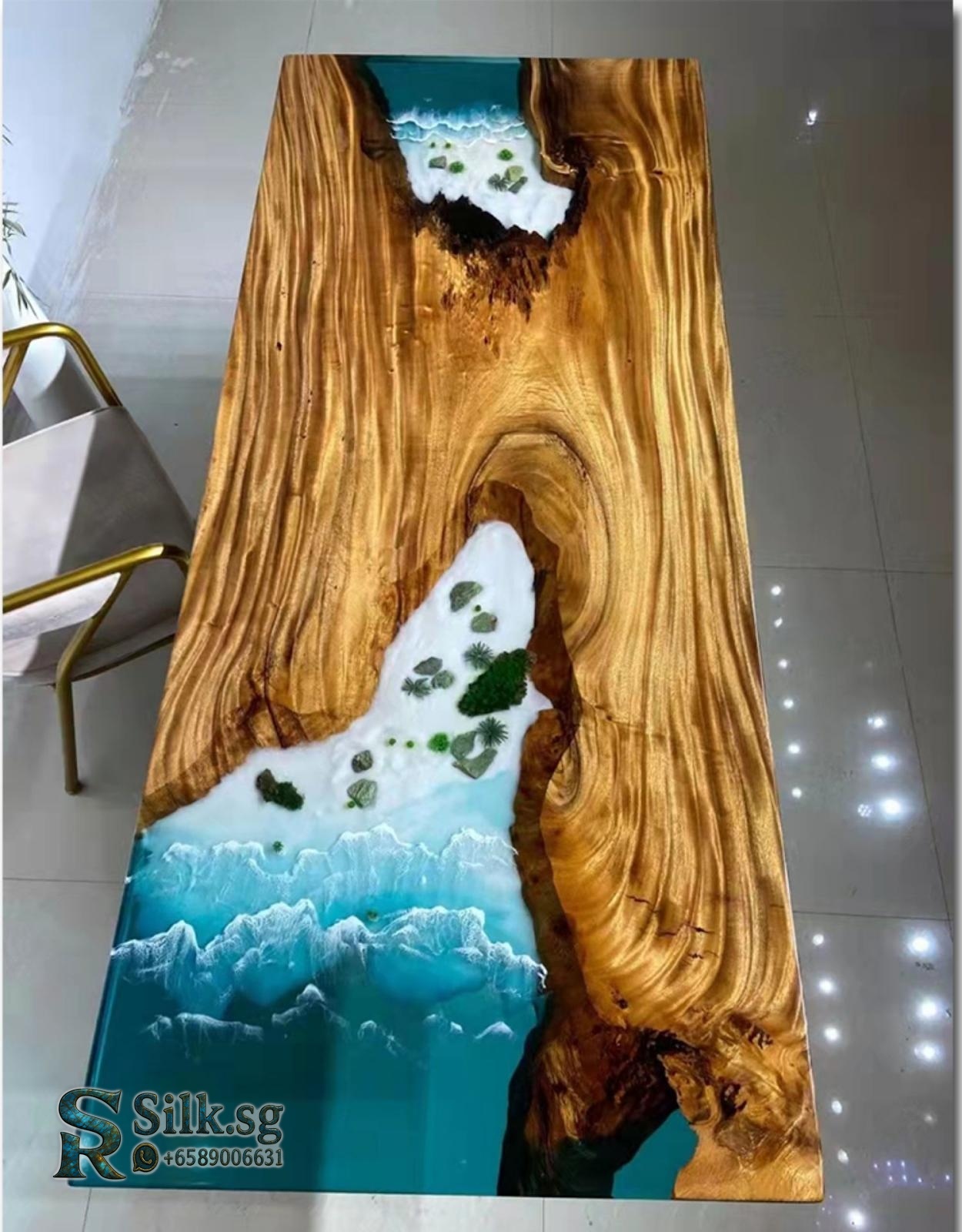 ArtisanCraft – Custom Resin River Table with Solid Wood Slab, 1.8m Cof