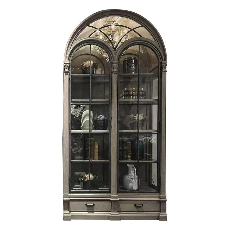 Premium American ART Architectural Revival Arched Wine Cabinet French Solid Wood Vintage Distressed Semi-Circular Glass Door Sideboard High-End for modern lifestyles. Designed for comfort, durability, and everyday use. {‘Brand’: ‘ZQT/Zhen Qita’, ‘Mod