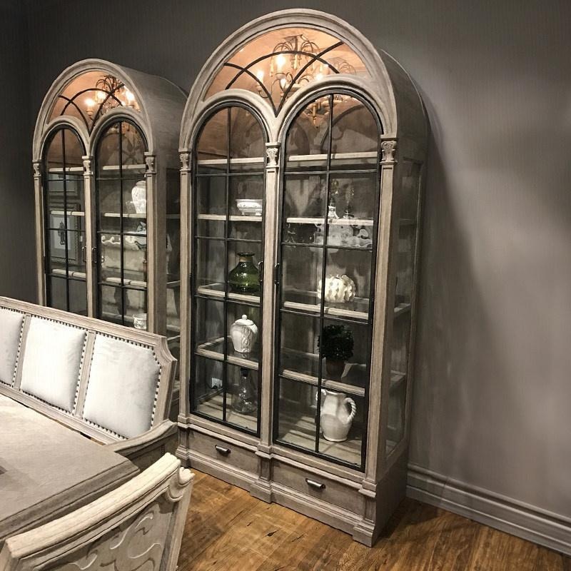ZQT – French Arched Wine Cabinet Solid Oak Wood Vintage Distressed Gla