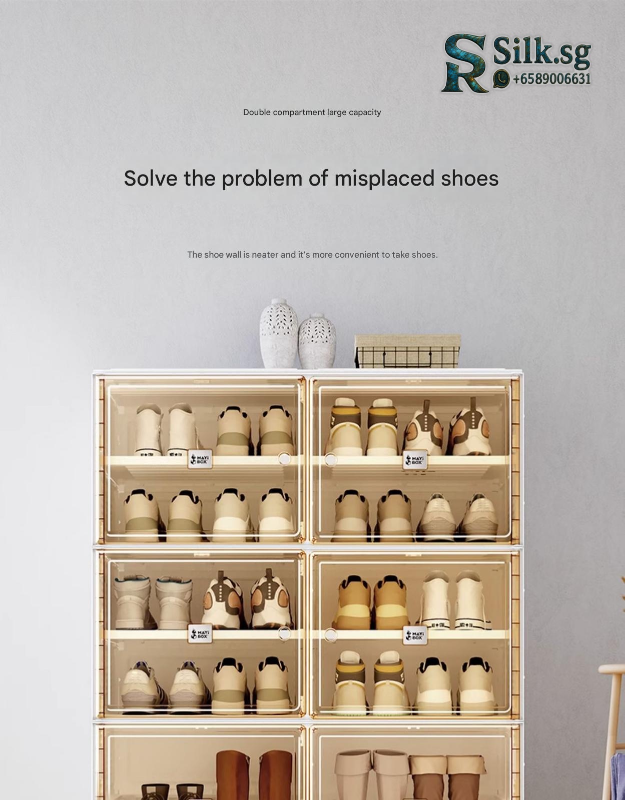 | Model | 1 column, 10 layers, 10 compartments (5 doors), holds 20 pairs, 1 column, 3 layers, 3 compartments (2 doors), holds 6 pairs, 1 column, 4 layers, 4 compartments (2 doors), holds 8 pairs, 1 column, 7 layers, 7 compartments (4 doors), holds 14 pairs, 1 column, 8 layers, 8 compartments (4 doors), holds 16 pairs, 1 column, 9 layers, 9 compartments (5 doors), holds 18 pairs, 2 columns, 10 layers, 18 compartments (10 doors), holds 36 pairs, 2 columns, 10 layers, 20 compartments (10 doors), holds 40 pairs, 2 columns, 4 layers, 6 compartments (4 doors), holds 12 pairs, 2 columns, 4 layers, 8 compartments (4 doors), holds 16 pairs, 2 columns, 6 layers, 10 compartments (6 doors), holds 20 pairs, 2 columns, 6 layers, 12 compartments (6 doors), holds 24 pairs, 2 columns, 8 layers, 14 compartments (8 doors), holds 28 pairs, 2 columns, 8 layers, 16 compartments (8 doors), holds 32 pairs, Transparent shoe box: 1 column, 6 layers, 6 compartments (6 doors), holds 6 pairs, Transparent shoe box: 2 columns, 6 layers, 12 compartments (12 doors), holds 12 pairs, Transparent shoe box: 2 columns, 8 layers, 16 compartments (16 doors), holds 16 pairs |
