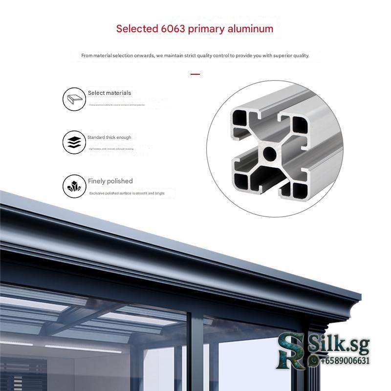 Enjoy a bright, comfortable sunroom extension with superior thermal insulation and durable tempered glass. Perfect for villa courtyards or rooftops, this custom aluminum alloy glass room creates a seamless, energy-efficient living space. Transform your home with elegant, year-round comfort.