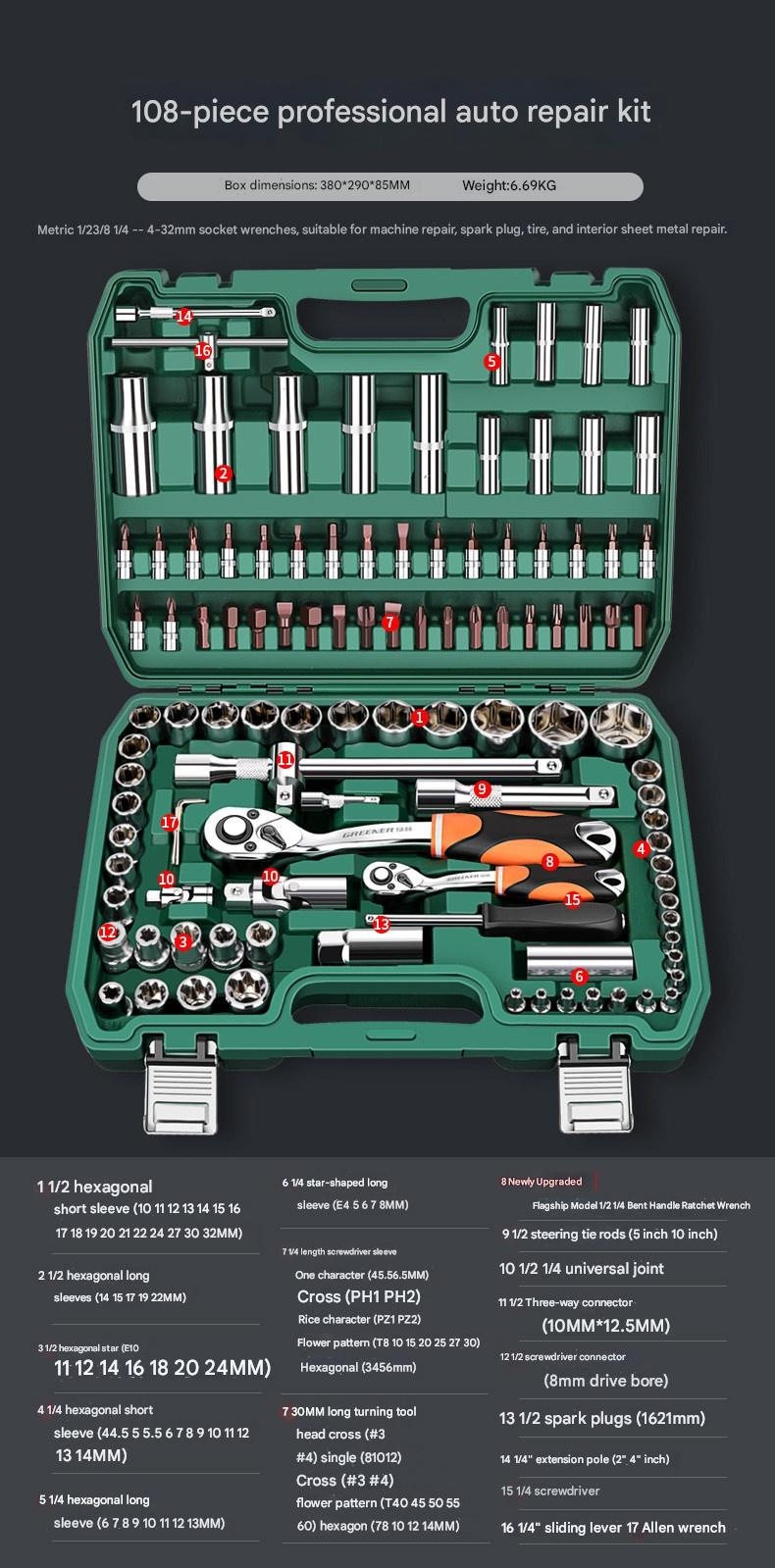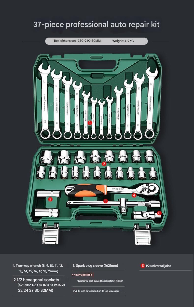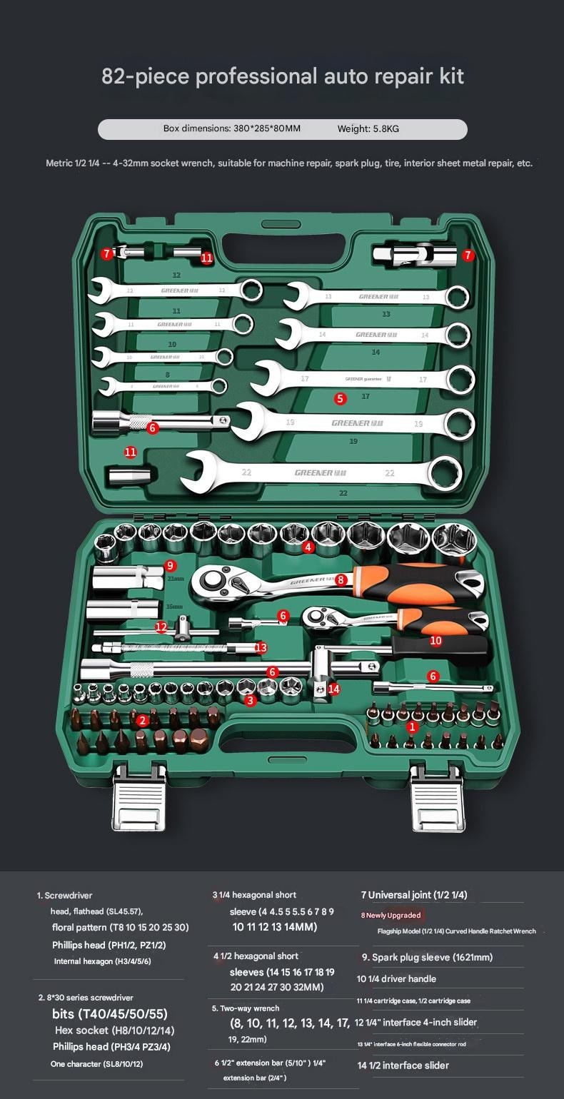 Premium Green Forest Automotive Repair Tool Set Socket Wrench Ratchet Car Maintenance Combination Toolbox Multi-function Small Fly for modern lifestyles. Designed for comfort, durability, and everyday use. {‘Brand’: ‘GREENER/Green Forest’, ‘Model’: ‘