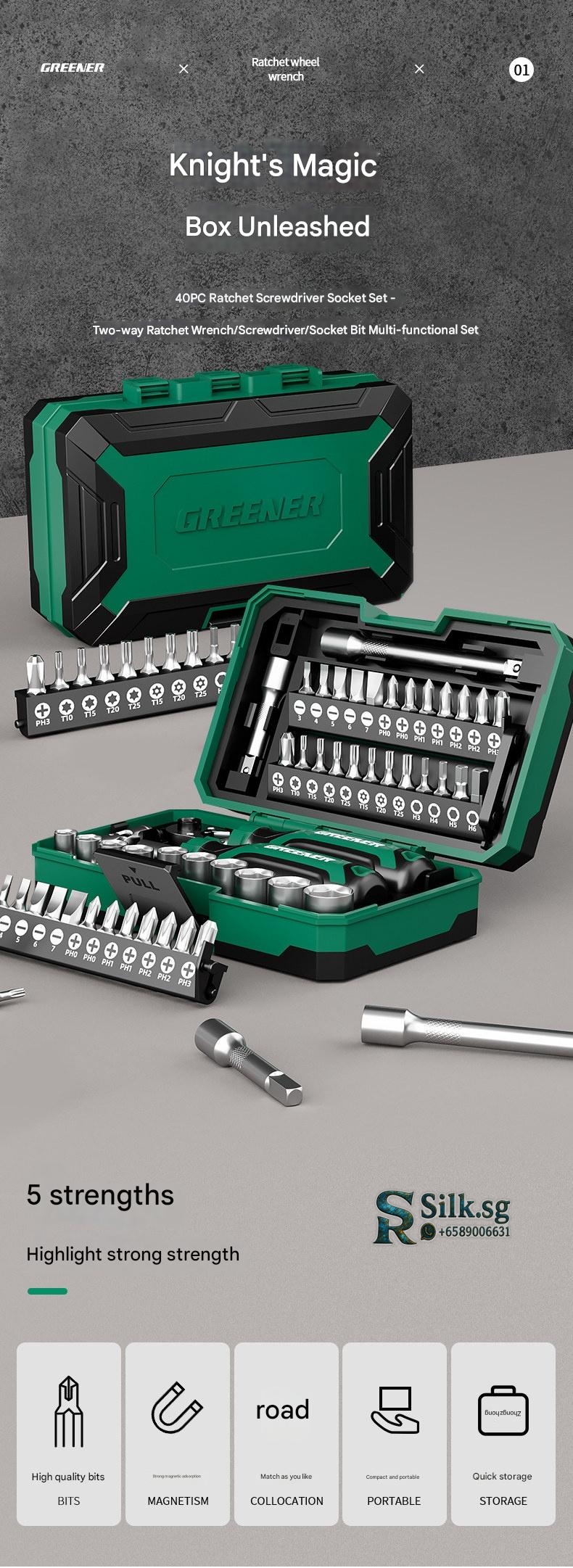 Premium Green Forest [Knight Magic Box] Small Flying Ratchet Wrench Socket Screwdriver Household Tool Kit Set with 40 Pieces for Vehicles for modern lifestyles. Designed for comfort, durability, and everyday use. {‘Brand’: ‘GREENER/Green Forest’, ‘Mo