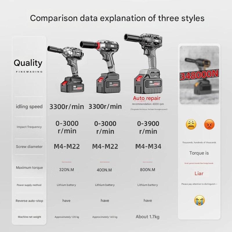 | Model | Automotive-Grade Torque King 800N [10-Cell 12.5Ah] 1B 1C, Automotive-Grade Torque King 800N [10-Cell 12.5Ah] 1B 1C + Gift Pack, Automotive-Grade Torque King 800N [10-Cell 12.5Ah] 2B 1C + Gift Pack, Automotive-Grade Torque King 800N [15-Cell 16.5Ah] 1B 1C, Automotive-Grade Torque King 800N [15-Cell 16.5Ah] 1B 1C + Gift Pack, Automotive-Grade Torque King 800N [15-Cell 16.5Ah] 2B 1C + Gift Pack, Brushless Heavy-Duty 400N [10-Cell 11.5Ah] 1B 1C, Brushless Heavy-Duty 400N [10-Cell 11.5Ah] 1B 1C + Gift Pack, Brushless Heavy-Duty 400N [10-Cell 11.5Ah] 2B 1C + Gift Pack, Brushless Heavy-Duty 400N [15-Cell 15.5Ah] 1B 1C, Brushless Heavy-Duty 400N [15-Cell 15.5Ah] 1B 1C + Gift Pack, Brushless Heavy-Duty 400N [15-Cell 15.5Ah] 2B 1C + Gift Pack, Brushless Luxury 320N [10-Cell 11.5Ah] 1B 1C, Brushless Luxury 320N [10-Cell 11.5Ah] 1B 1C + Gift Pack, Brushless Luxury 320N [10-Cell 11.5Ah] 2B 1C + Gift Pack, Brushless Luxury 320N [10.5Ah] 1B 1C, Brushless Luxury 320N [10.5Ah] 1B 1C + Gift Pack, Brushless Luxury 320N [10.5Ah] 2B 1C + Gift Pack, Higher torque = stronger |
