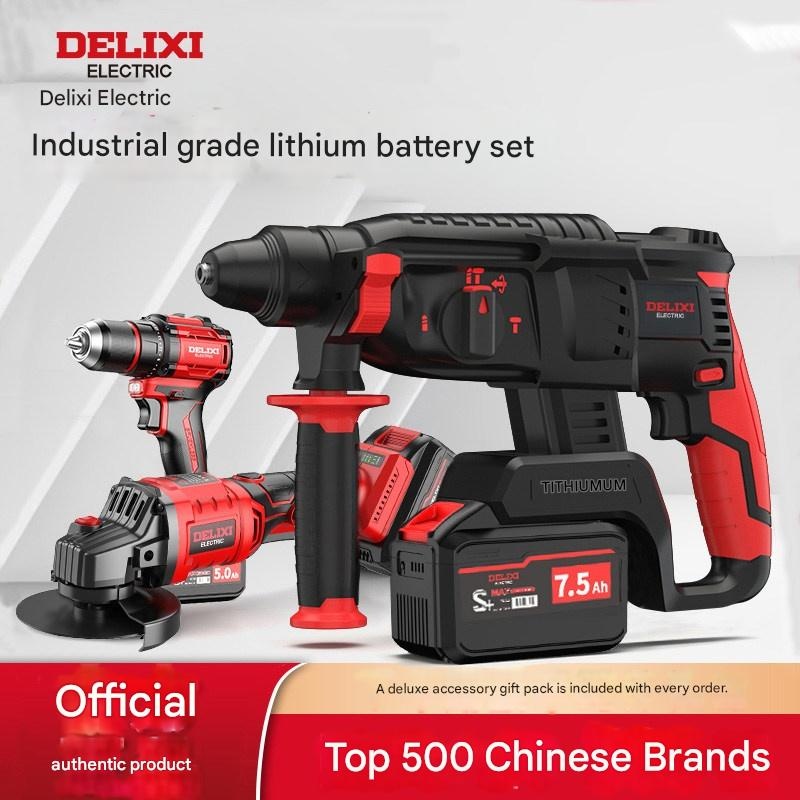 | Set | Brushless Hammer Drill: 4.0Ah, 1 Battery & Charger + Gift, Brushless Hammer Drill: 4.0Ah, 2 Batteries & Charger + Gift, Brushless Hammer Drill: 5.0Ah, 1 Battery & Charger + Gift, Brushless Hammer Drill: 5.0Ah, 2 Batteries & Charger + Gift, Brushless Hammer Drill: 6.0Ah, 1 Battery & Charger + Gift, Brushless Hammer Drill: 6.0Ah, 2 Batteries & Charger + Gift, Brushless Hammer Drill: 7.5Ah, 1 Battery & Charger + Gift, Brushless Hammer Drill: 7.5Ah, 2 Batteries & Charger + Gift, Delixi Electric Combo Set, Hammer Drill & Angle Grinder 2-in-1: 5.0Ah, 1 Battery + Gift, Hammer Drill & Angle Grinder 2-in-1: 5.0Ah, 2 Batteries + Gift, Hammer Drill & Angle Grinder 2-in-1: 6.0Ah, 1 Battery + Gift, Hammer Drill & Angle Grinder 2-in-1: 6.0Ah, 2 Batteries + Gift, Hammer Drill & Angle Grinder 2-in-1: 7.5Ah, 1 Battery + Gift, Hammer Drill & Angle Grinder 2-in-1: 7.5Ah, 2 Batteries + Gift, Hammer Drill, Angle Grinder & Drill 3-in-1: 5.0Ah, 2 Batteries + Gift, Hammer Drill, Angle Grinder & Drill 3-in-1: 6.0Ah, 2 Batteries + Gift, Hammer Drill, Angle Grinder & Drill 3-in-1: 7.5Ah, 2 Batteries + Gift, Hammer Drill, Angle Grinder & Wrench 3-in-1: 5.0Ah, 2 Batteries + Gift, Hammer Drill, Angle Grinder & Wrench 3-in-1: 6.0Ah, 2 Batteries + Gift, Hammer Drill, Angle Grinder & Wrench 3-in-1: 7.5Ah, 2 Batteries + Gift, Hammer Drill, Angle Grinder, Wrench & Drill 4-in-1: 5.0Ah, 2 Batteries + Gift, Hammer Drill, Angle Grinder, Wrench & Drill 4-in-1: 6.0Ah, 2 Batteries + Gift, Hammer Drill, Angle Grinder, Wrench & Drill 4-in-1: 6.0Ah, 4 Batteries & 2 Chargers + Gift, Hammer Drill, Angle Grinder, Wrench & Drill 4-in-1: 7.5Ah, 2 Batteries + Gift, Hammer Drill, Angle Grinder, Wrench & Drill 4-in-1: 7.5Ah, 4 Batteries & 2 Chargers + Gift |