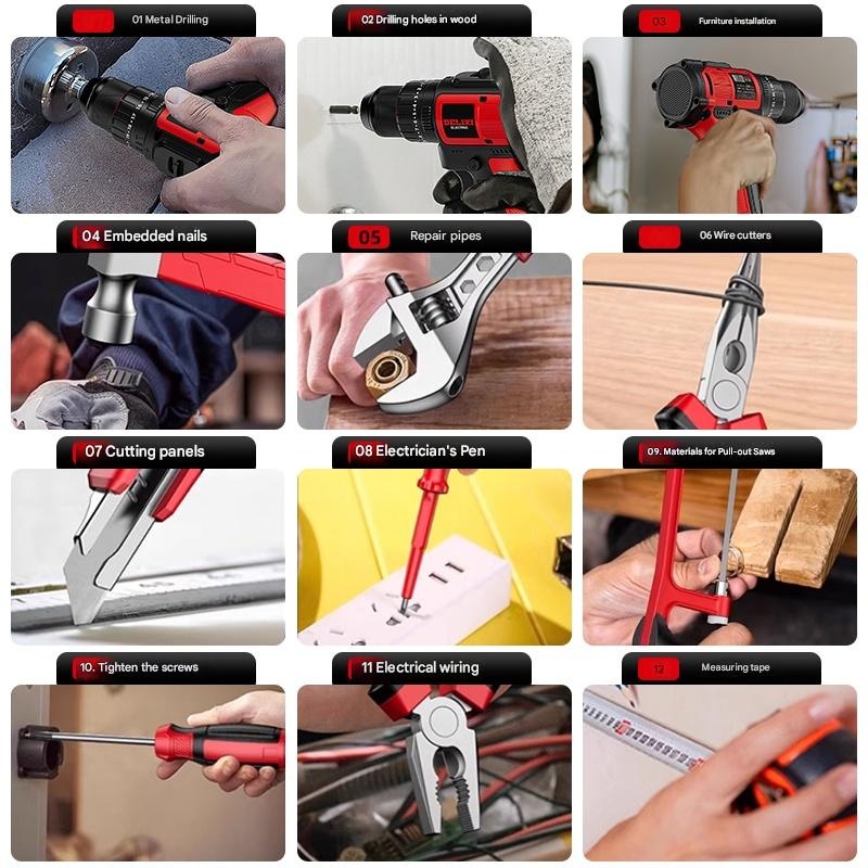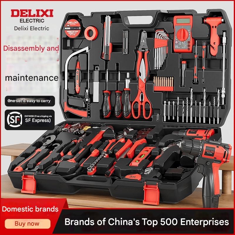 Premium Delixi Toolbox Home Set Multi-function Electric Drill Electrician Repair Hardware Tools Complete Function Full Set for modern lifestyles. Designed for comfort, durability, and everyday use. {‘Brand’: ‘Delixi (Hardware)’, ‘Model’: ‘DDGJX0901’,