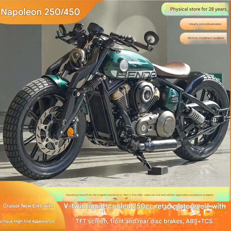 Premium Benda Napoleon 250cc Retro Cruiser Motorcycle with ABS Front/Rear Disc Brakes V-Twin Engine Harley-Style Bike for modern lifestyles. Designed for comfort, durability, and everyday use. {‘Dimensions’: ‘2333x838x1038cm’, ‘Model’: ‘250’, ‘Brand’