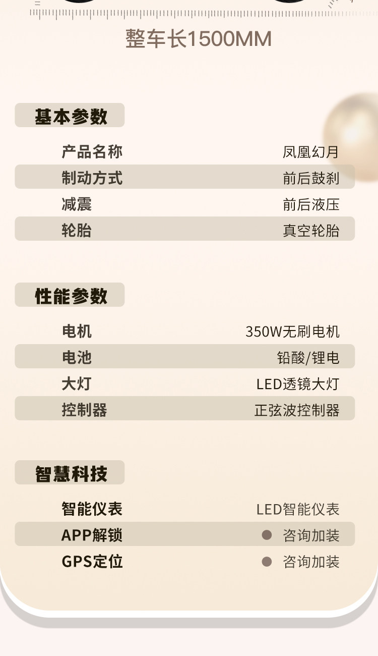 | Option | 3 colors with 15A Automotive-Grade Lithium Battery, 85km range, portable charging & anti-theft alarm, 3 colors with 20A Automotive-Grade Lithium Battery, 120km range, portable charging & anti-theft alarm, 3 colors with 24A Automotive-Grade Lithium Battery, 135km range, portable charging & anti-theft alarm, 3 colors with 30A Automotive-Grade Lithium Battery, 150km range, portable charging & anti-theft alarm, Beige with 12A Automotive-Grade Lithium Battery, 75km range, portable charging & 1-key start, Beige with 12A Energy Black Gold Battery, 70km range, Beige with 12A Tianneng/Chaowei Graphene Battery, 80km range, license plate & brand battery, Beige with 14A Graphene Black Gold Battery, 75km range & portable charging, Beige with 20A Tianneng/Chaowei Graphene Battery, 120km range, anti-theft alarm & 1-key start, Beige with 24A Graphene Black Gold Battery, 110km range, non-portable charging & anti-theft alarm, Blue with 12A Automotive-Grade Lithium Battery, 75km range, portable charging & 1-key start, Blue with 12A Energy Black Gold Battery, 70km range, Blue with 12A Tianneng/Chaowei Graphene Battery, 80km range, license plate & brand battery, Blue with 14A Graphene Black Gold Battery, 75km range & portable charging, Blue with 20A Tianneng/Chaowei Graphene Battery, 120km range, anti-theft alarm & 1-key start, Blue with 24A Graphene Black Gold Battery, 110km range, non-portable charging & anti-theft alarm, E-bike accessories, Pink with 12A Automotive-Grade Lithium Battery, 75km range, portable charging & 1-key start, Pink with 12A Energy Black Gold Battery, 70km range, Pink with 12A Tianneng/Chaowei Graphene Battery, 80km range, license plate & brand battery, Pink with 14A Graphene Black Gold Battery, 75km range & portable charging, Pink with 20A Tianneng/Chaowei Graphene Battery, 120km range, anti-theft alarm & 1-key start, Pink with 24A Graphene Black Gold Battery, 110km range, non-portable charging & anti-theft alarm |