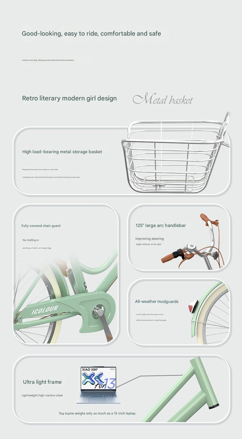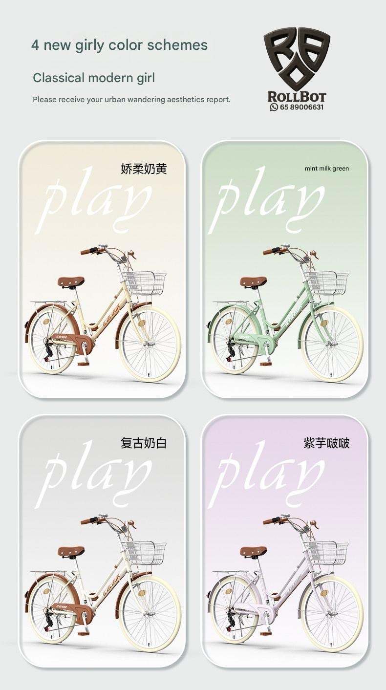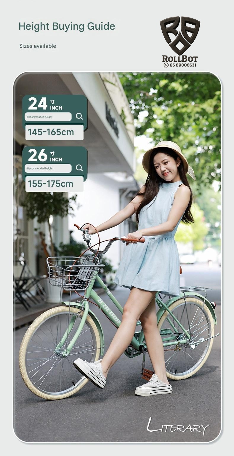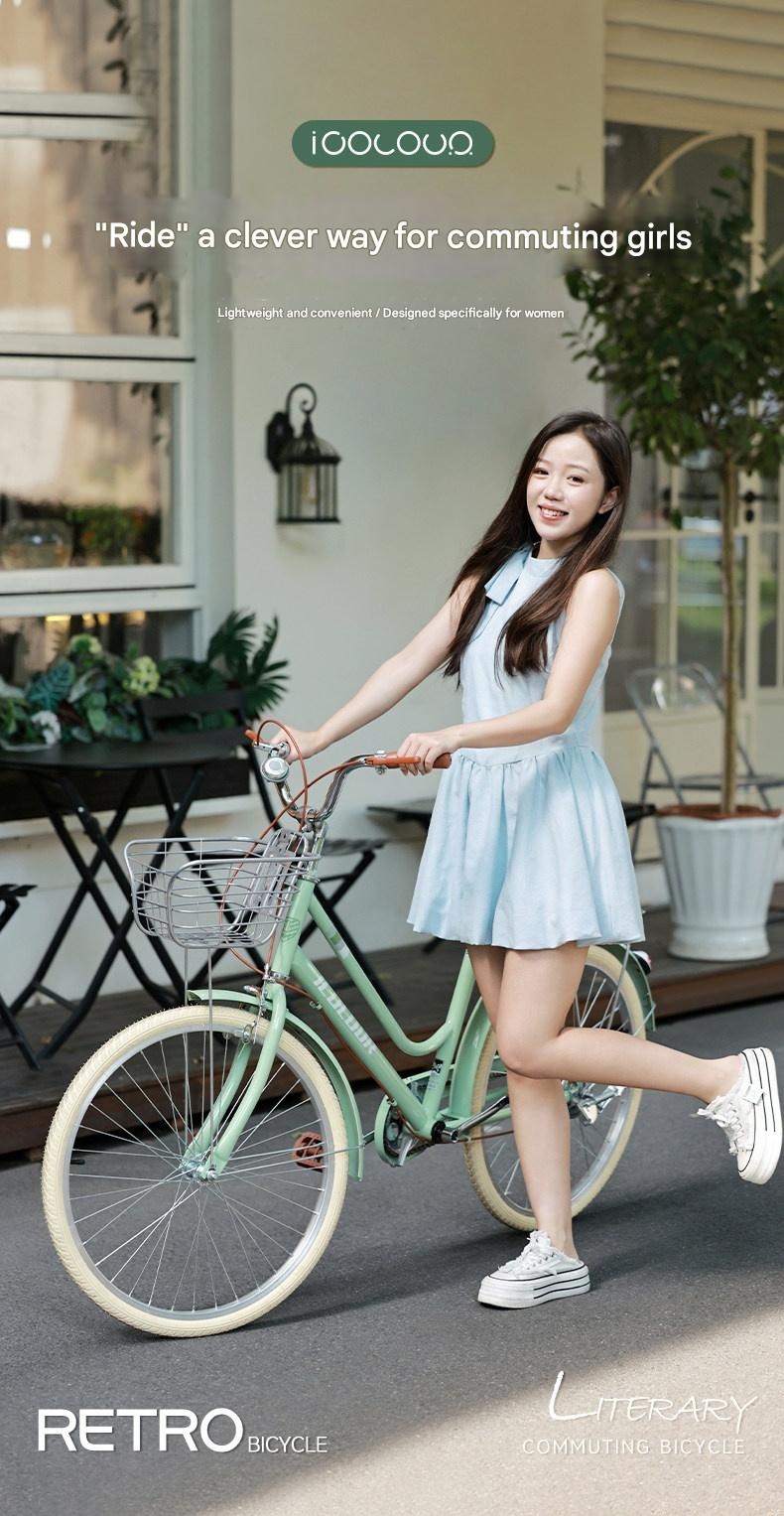 Discover this lightweight vintage womens bicycle perfect for city commuting. It features smooth gear shifting and durable construction for a comfortable ride. Ideal for college students and ladies seeking eco-friendly, stylish transportation with a unique vintage charm.