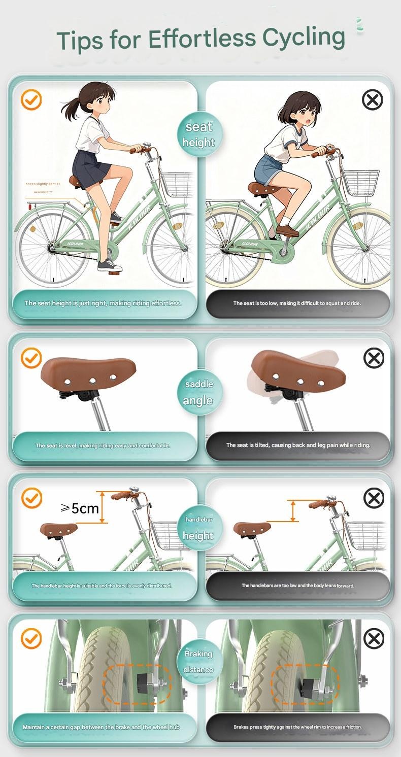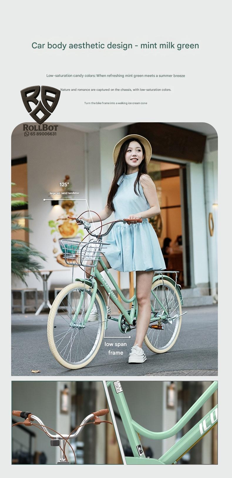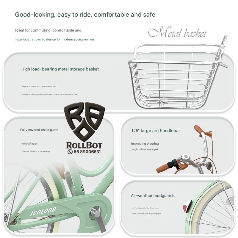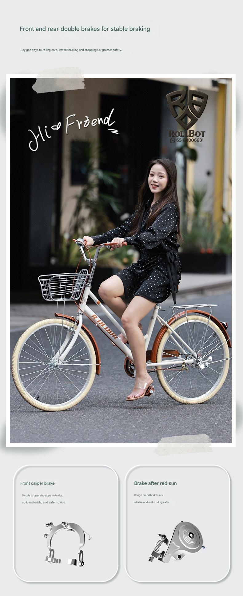 Discover this lightweight vintage womens bicycle perfect for city commuting. It features smooth gear shifting and durable construction for a comfortable ride. Ideal for college students and ladies seeking eco-friendly, stylish transportation with a unique vintage charm.