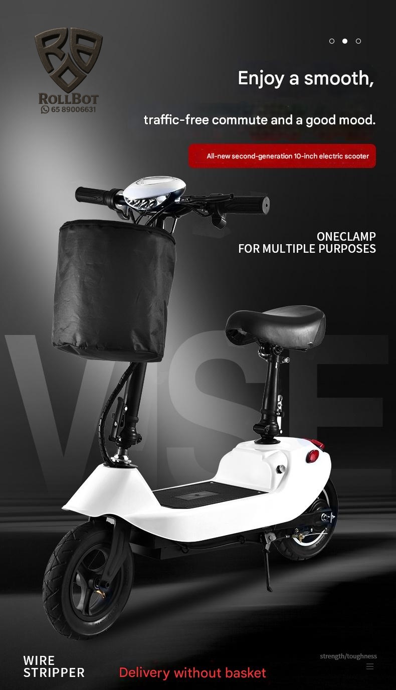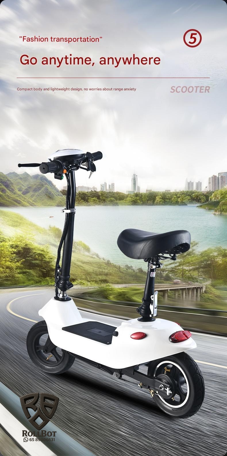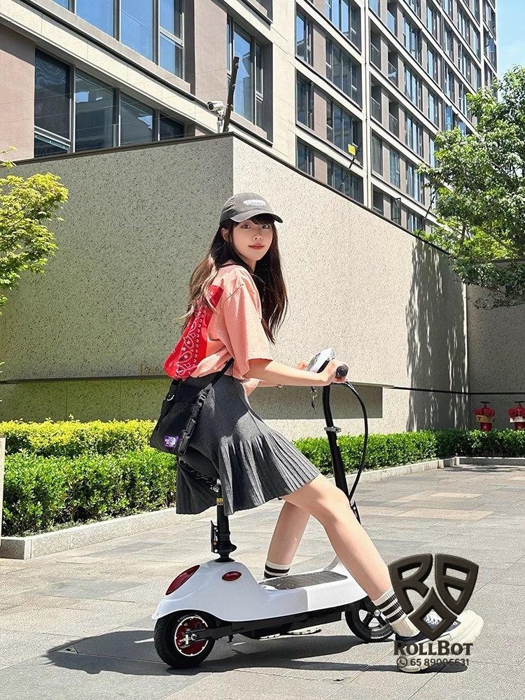 Perfect for urban commuters seeking an eco-friendly, lightweight vehicle, this foldable electric scooter offers a comfortable ride with a built-in seat and durable steel frame. Its long-range battery and easy folding design make daily travel effortless and enjoyable.