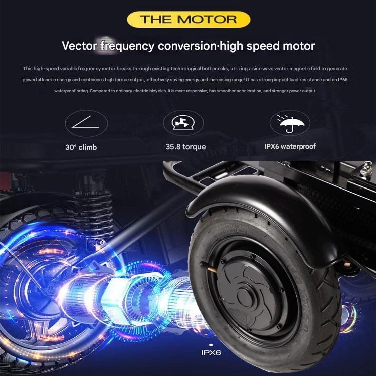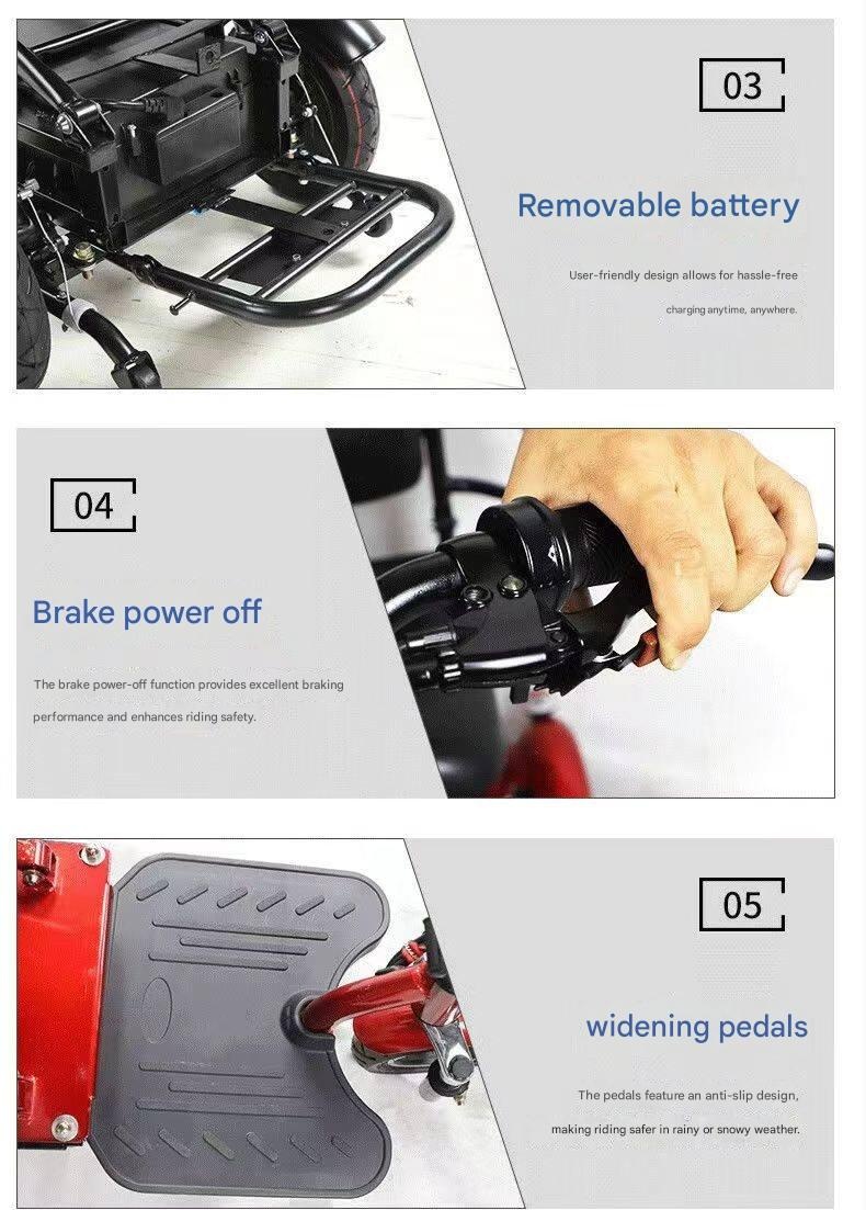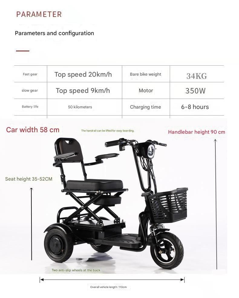 Enjoy effortless daily travel with this lightweight, folding electric tricycle. Its dual-motor power assist and reliable disc brakes provide a smooth, stable ride, perfect for commuting or running errands. Experience newfound freedom and independence—start your next adventure with confidence.