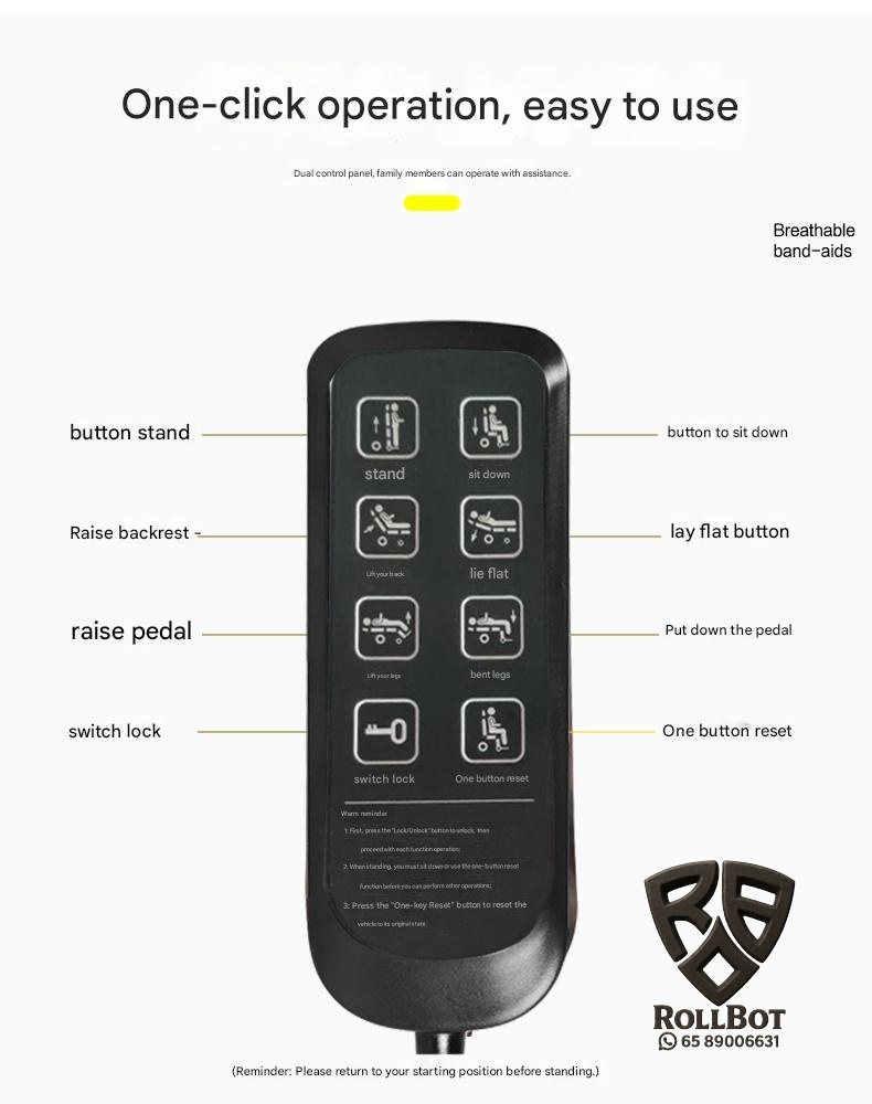 Regain independence and comfort with this fully automatic electric wheelchair. Its intelligent stand, recline, and leg lift functions provide effortless repositioning and pressure relief, perfect for daily mobility. Experience smooth, hands-free movement and rediscover your freedom.