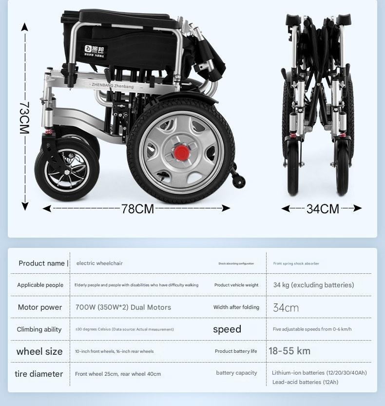 Zhenbang – Foldable Electric Wheelchair for Elderly & Disabled, Lightw