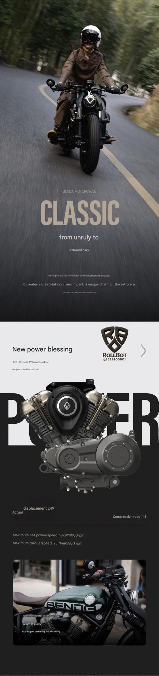 Benda Napoleon 250cc – Benda Napoleon 250cc Retro Cruiser ABS Front and Rear Disc Brakes V-Ty