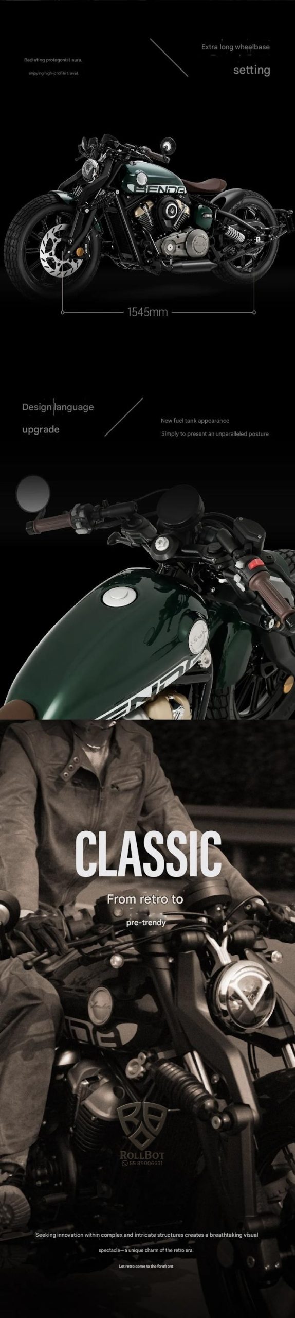 Experience the thrill of riding with this stylish Harley-style cruiser, featuring powerful V-type engine and reliable ABS brakes for safety. Perfect for daily commuting or relaxing rides, its retro design and smooth performance make every journey memorable. Elevate your ride today.