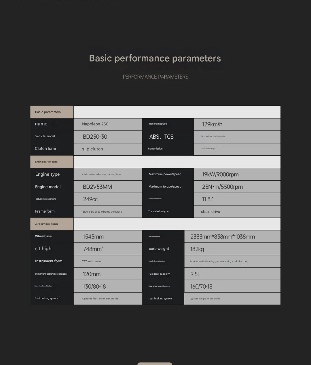 | Color | Athens White Napoleon 250, Deposit Difference, Golden Black Napoleon 450, Golden Black Wheel Napoleon 450, Gray Moon Black Wheel Napoleon 450, Gray Moon Napoleon 450, Jazz Red Napoleon 250, Night Black Napoleon 250, Titanium Silver Napoleon 250, Vintage Green Napoleon 250 |