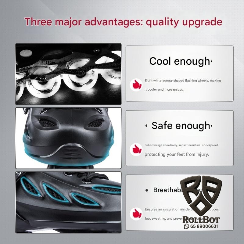 Master the streets with these versatile inline skates, featuring a secure double-buckle fit and smooth-rolling PU wheels for a confident ride. Perfect for beginners and pros alike, they offer a unique, fun way to stay active. Feel the freedom and glide into your next adventure.
