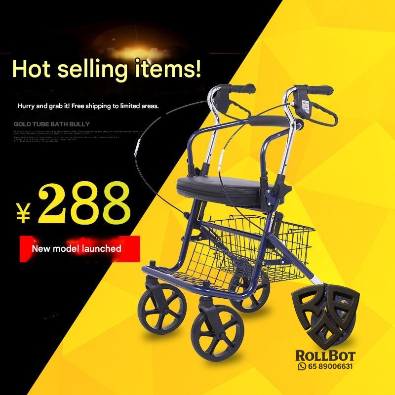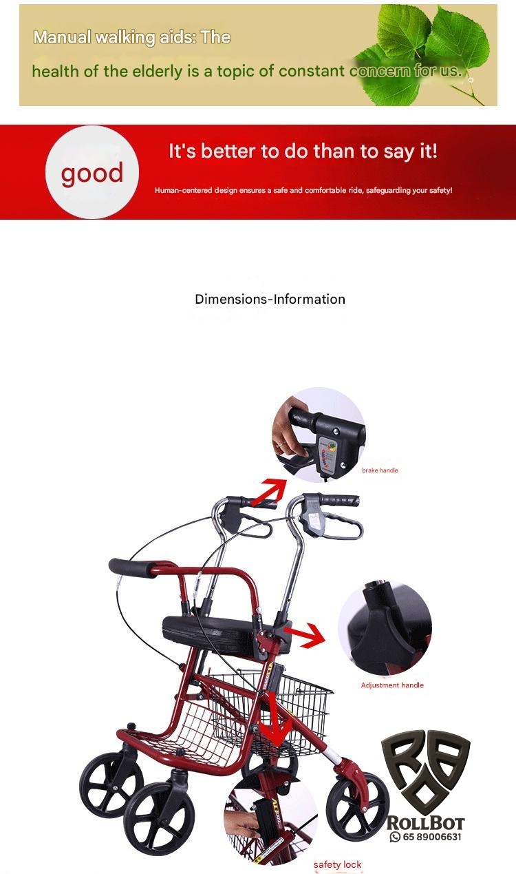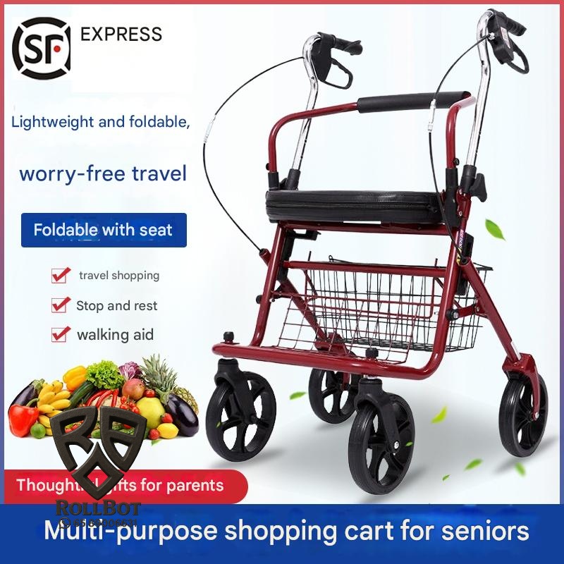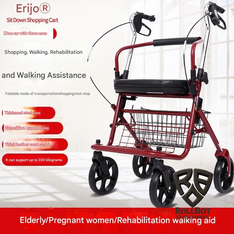 Elijiao – Foldable 4 – Wheel Sit – Down Walker Pushcart for Seniors Mo
