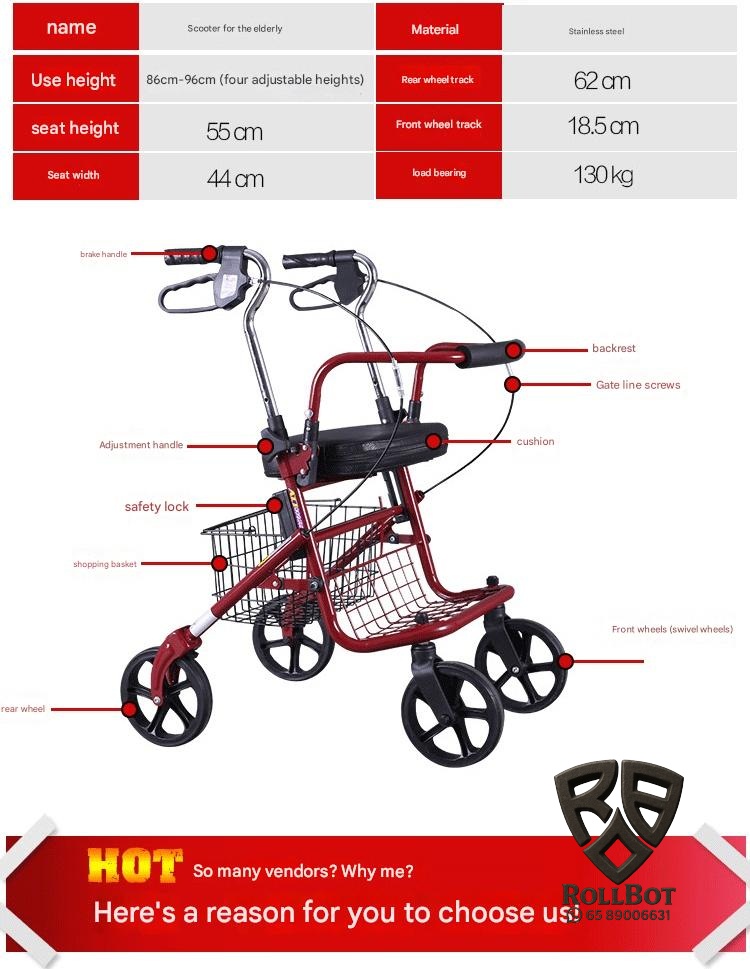 Enjoy effortless mobility with this portable shopping scooter. Its stable four-wheel design and easy foldability make trips smooth and storage simple. Perfect for seniors seeking independence, the vibrant red-blue Elijiao walker combines safety with style for your daily adventures.