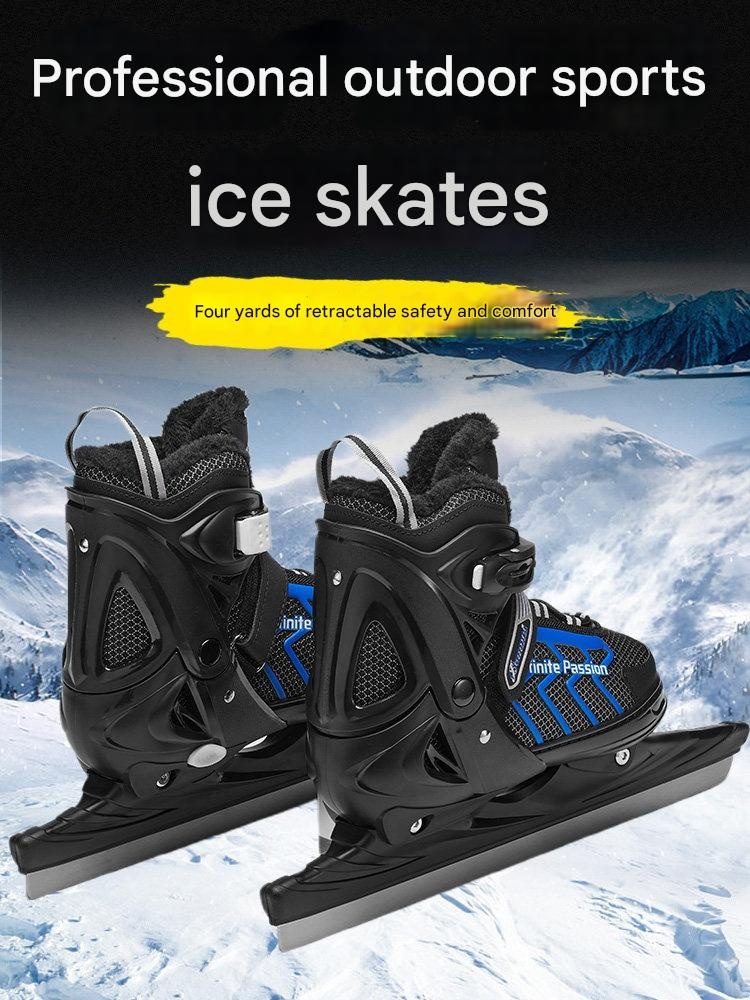 Experience the joy of gliding with these professional ice skates, featuring a warm, adjustable fit for the whole family and durable hockey blades for smooth control. Perfect for beginners seeking comfort and confidence on the rink. Step into your next adventure.