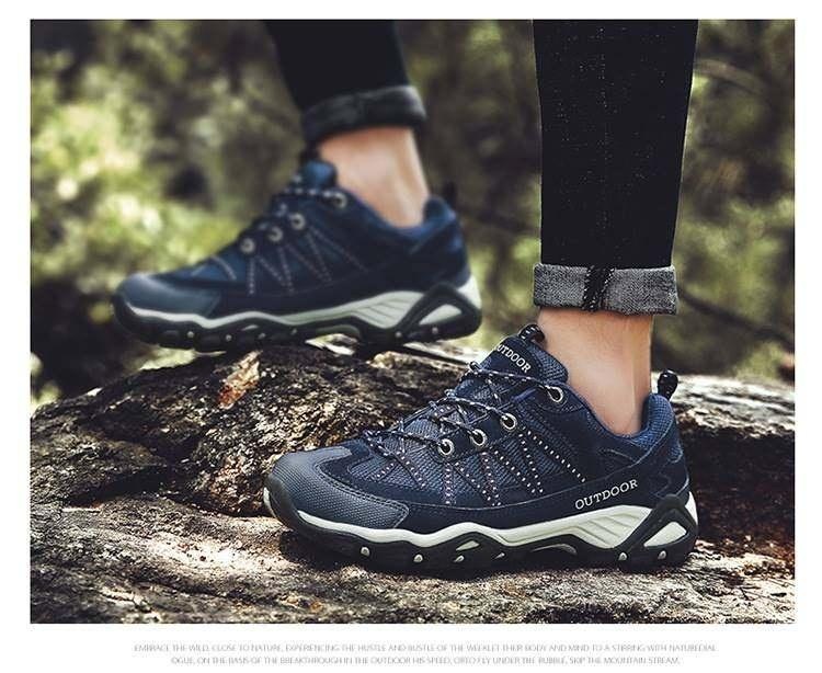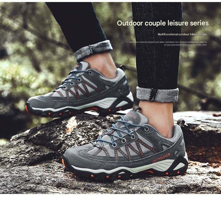 Conquer any trail with confidence in these versatile hiking shoes. Their anti-slip grip and shock-absorbing comfort keep you stable on rugged terrain. Perfect for adventurous couples seeking reliable footwear for day hikes and travel. Step into your next adventure feeling secure and supported.
