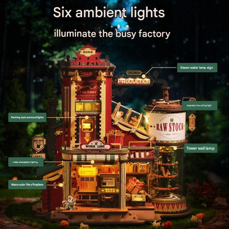 ROKR – DIY Wooden Gift Factory Building Kit with Music & Lights