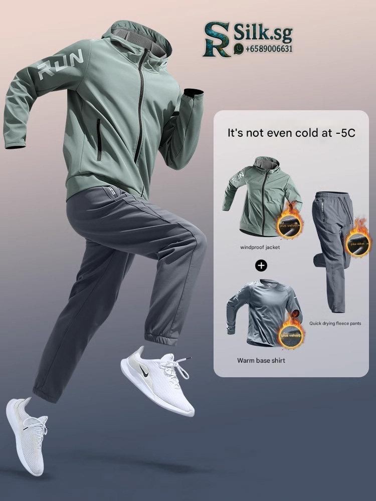 Stay warm and comfortable during outdoor winter runs with this quick-drying, fleece-lined sports set. Perfect for men who enjoy early morning fitness, it offers breathability, warmth, and freedom of movement. Elevate your winter workouts with reliable, cozy gear designed to motivate and inspire.