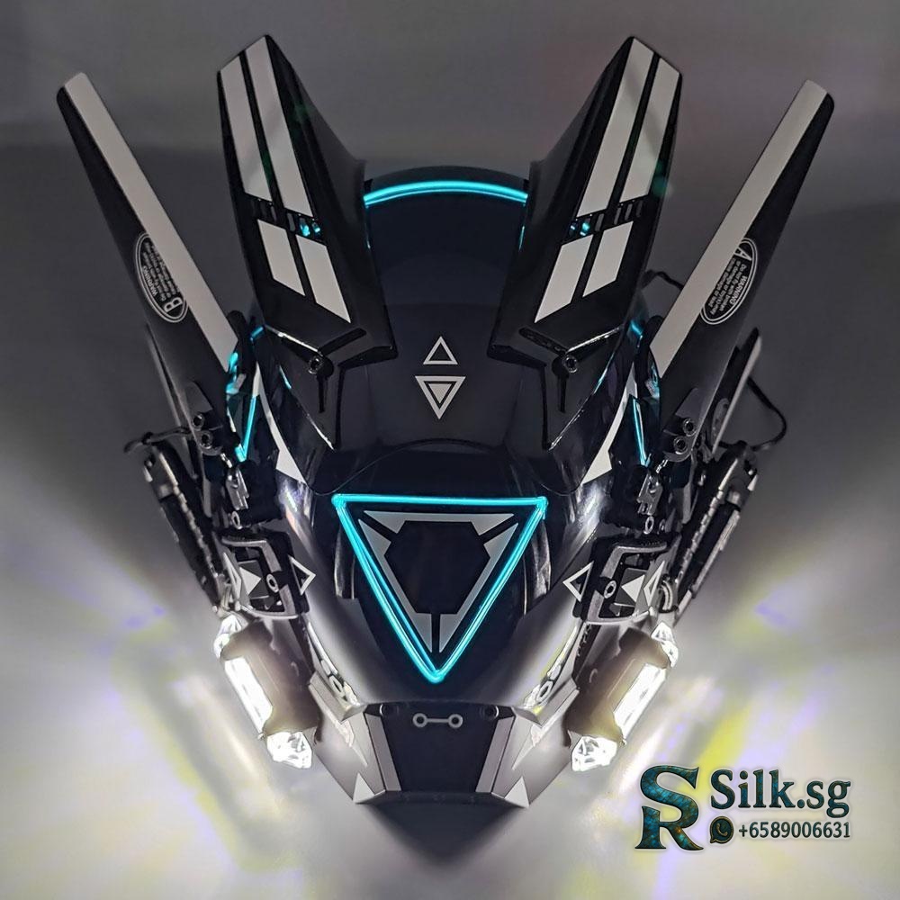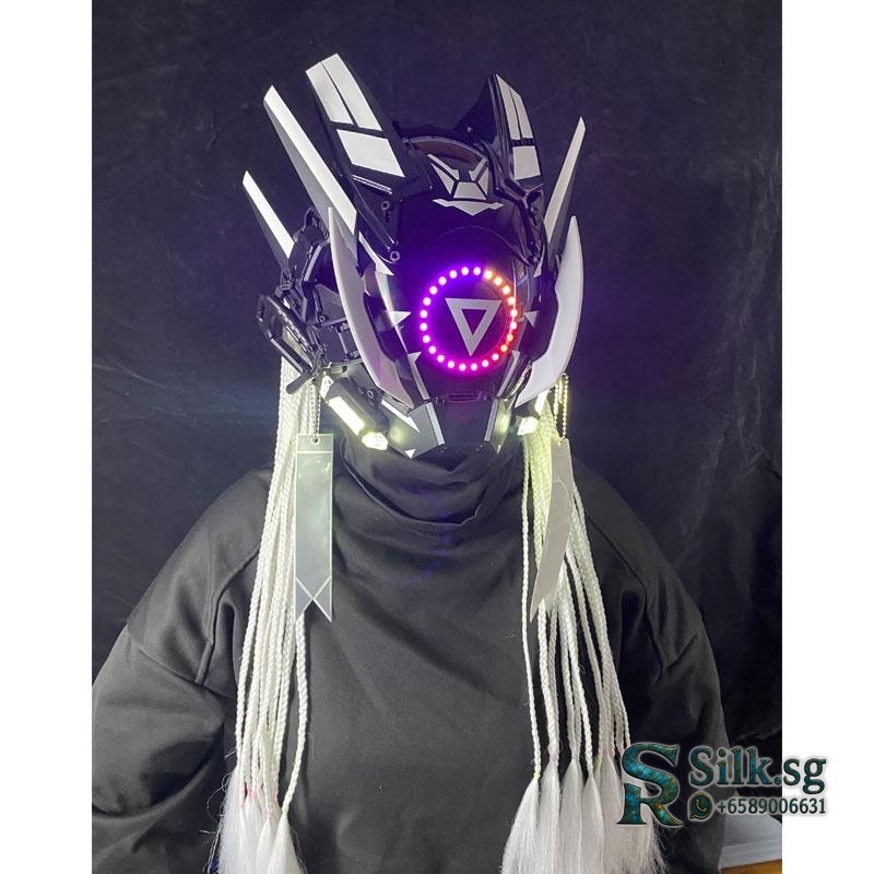 Step into the future with this full-face cyberpunk helmet mask. Its customizable glowing LED lights and remote control create an immersive, high-tech look. Perfect for cosplay events or Halloween, this mask ensures you stand out with authentic mech style. Become the ultimate predator of the night.