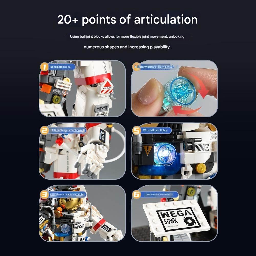 Master the ultimate space challenge with this astronaut building blocks set, featuring articulated joints and a premium gift box. Perfect for aspiring builders aged 7+, it offers ten levels of difficulty for endless, rewarding fun. Launch their imagination and conquer this epic build.