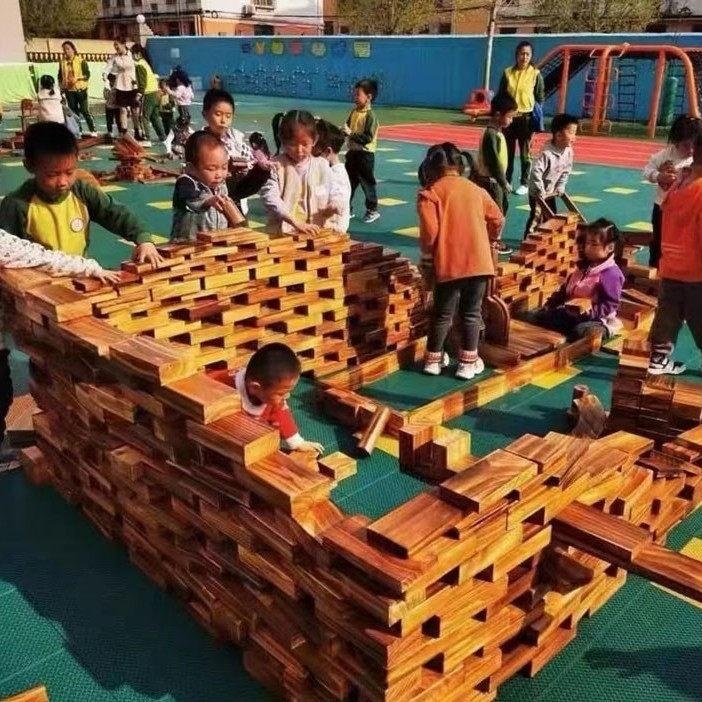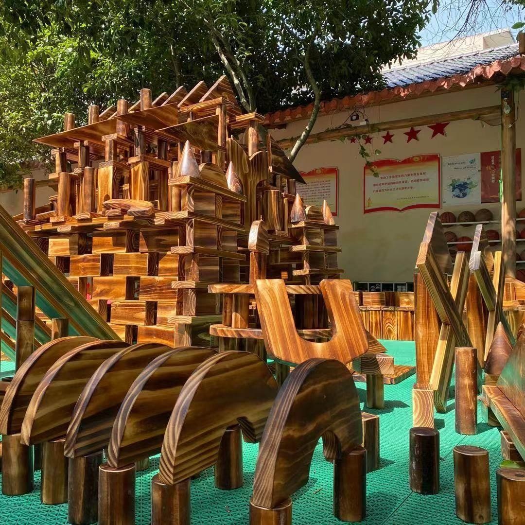 These large carbonized wooden blocks are incredibly durable and safe for endless creative play. Perfect for kindergarten construction zones, their unique charred finish adds a rustic, natural feel to any indoor or outdoor space. Inspire young builders with this timeless, open-ended educational toy.