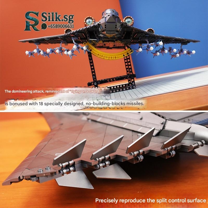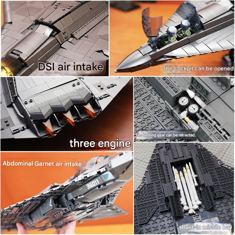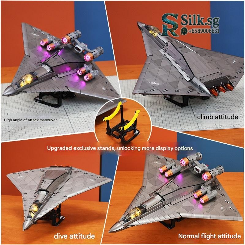 | Model | F-14D Tomcat Fighter w/ Purple Engine, Stand, 12 Missiles, 4 Launchers & Pilot, F-14D Tomcat Fighter w/ Red Engine, Stand, 12 Missiles, 4 Launchers & Pilot, F-16 Fighter w/ Purple Engine, Stand, 12 Missiles, 4 Launchers & Pilot, F-16 Fighter w/ Red Engine, Stand, 12 Missiles, 4 Launchers & Pilot, Gold J-35 w/ Purple Engine, Stand, 14 Missiles, 4 Launchers, 2 Minifigures & Weapons, Gold J-35 w/ Red Engine, Stand, 14 Missiles, 4 Launchers, 2 Minifigures & Weapons, H-20 Stealth Bomber w/ 5 Minifigures, 6 Missiles & Weapons, H-6K Strategic Bomber w/ Stand, Launchable Shells, Special Forces Minifigures & Missiles, J-15 Carrier-Based Fighter w/ Purple Engine, Stand, Missiles, Minifigures, Weapons & 4 Launchers, J-15 Carrier-Based Fighter w/ Red Engine, Stand, Missiles, Minifigures, Weapons & 4 Launchers, J-20 5th Gen Fighter w/ Purple Engine, Stand, Missiles, Minifigures, Weapons & 4 Launchers, J-20 5th Gen Fighter w/ Red Engine, Stand, Missiles, Minifigures, Weapons & 4 Launchers, J-35 Stealth Carrier-Based Fighter w/ Purple Engine, Stand, Missiles, Minifigures, Weapons & 4 Launchers, J-35 Stealth Carrier-Based Fighter w/ Red Engine, Stand, Missiles, Minifigures, Weapons & 4 Launchers, KJ-600 AWACS w/ Stand & Special Forces Team, Large Edition F-18 Hornet Fighter w/ Purple Engine, Stand, 12 Missiles, 4 Launchers & Pilot, Large Edition F-18 Hornet Fighter w/ Red Engine, Stand, 12 Missiles, 4 Launchers & Pilot, Large Edition J-10B Fighter w/ Purple Engine, Stand, 15 Missiles, 4 Launchers, 2 Vehicles, 4 Minifigures & Weapons, Large Edition J-10B Fighter w/ Red Engine, Stand, 15 Missiles, 4 Launchers, 2 Vehicles, 4 Minifigures & Weapons, Large Edition J-20 Stealth Fighter w/ Purple Engine, Stand, 14 Missiles, 4 Launchers, 4 Minifigures & Weapons, Large Edition J-20 Stealth Fighter w/ Red Engine, Stand, 14 Missiles, 4 Launchers, 4 Minifigures & Weapons, Large Edition J-35 w/ Purple Engine, Stand, 14 Missiles, 4 Launchers, 4 Minifigures & Weapons, Large Edition J-35 w/ Red Engine, Stand, 14 Missiles, 4 Launchers, 4 Minifigures & Weapons, Large Edition Sci-Fi Carrier-Based Fighter w/ Purple Engine, Stand, 10 Missiles, 4 Launchers, 5 Minifigures & Weapons, Large Edition Sci-Fi Carrier-Based Fighter w/ Red Engine, Stand, 10 Missiles, 4 Launchers, 5 Minifigures & Weapons, Large Edition Su-57 Fighter w/ Purple Engine, Stand, 12 Missiles, 4 Launchers & Pilot, Large Edition Su-57 Fighter w/ Red Engine, Stand, 12 Missiles, 4 Launchers & Pilot, Lighting Edition Y-20B Aerial Refueling Tanker w/ Stand & Special Forces Minifigures, Titanium Alloy J-16 Fighter w/ Purple Turbofan, Stand, 15 Missiles, Launcher & Minifigures, Titanium Alloy J-16 Fighter w/ Red Turbofan, Stand, 15 Missiles, Launcher & Minifigures, Titanium Alloy J-20 Fighter w/ Purple Turbofan, Stand, 14 Missiles, Launcher & Minifigures, Titanium Alloy J-20 Fighter w/ Red Turbofan, Stand, 14 Missiles, Launcher & Minifigures, Titanium Alloy J-35 Carrier-Based Fighter w/ Purple Turbofan, Stand, 10 Missiles, Launcher & Minifigures, Titanium Alloy J-35 Carrier-Based Fighter w/ Red Turbofan, Stand, 10 Missiles, Launcher & Minifigures, Titanium Alloy J-36 6th Gen Stealth Fighter w/ Cockpit Light, Stand, 2 Pilots & 6 Missiles, Titanium Alloy J-36 Fighter w/ 6 Purple Electromagnetic Cannons, Upgraded Stand, Cockpit Light, 24 Missiles & 2 Pilots, Titanium Alloy J-36 Fighter w/ 6 Red Electromagnetic Cannons, Upgraded Stand, Cockpit Light, 24 Missiles & 2 Pilots, Titanium Alloy J-36 Fighter w/ Twin Purple Electromagnetic Cannons, Upgraded Stand, Cockpit Light, 24 Missiles & 2 Pilots, Titanium Alloy J-36 Fighter w/ Twin Red Electromagnetic Cannons, Upgraded Stand, Cockpit Light, 24 Missiles & 2 Pilots, Y-20 w/ Stand, Cruise Light, Engine Light, Launchable Missiles, 5 Minifigures, 2 Armored Vehicles, Weapons & Supply Box |