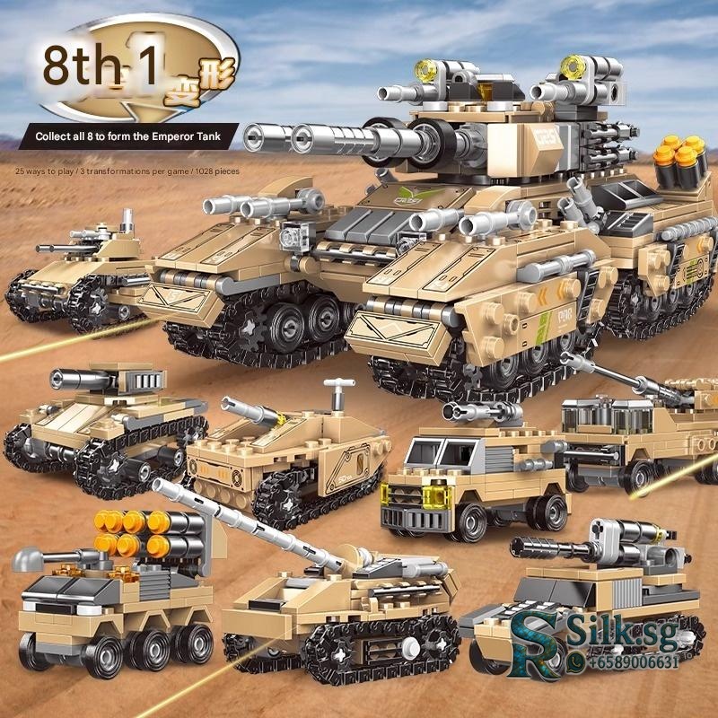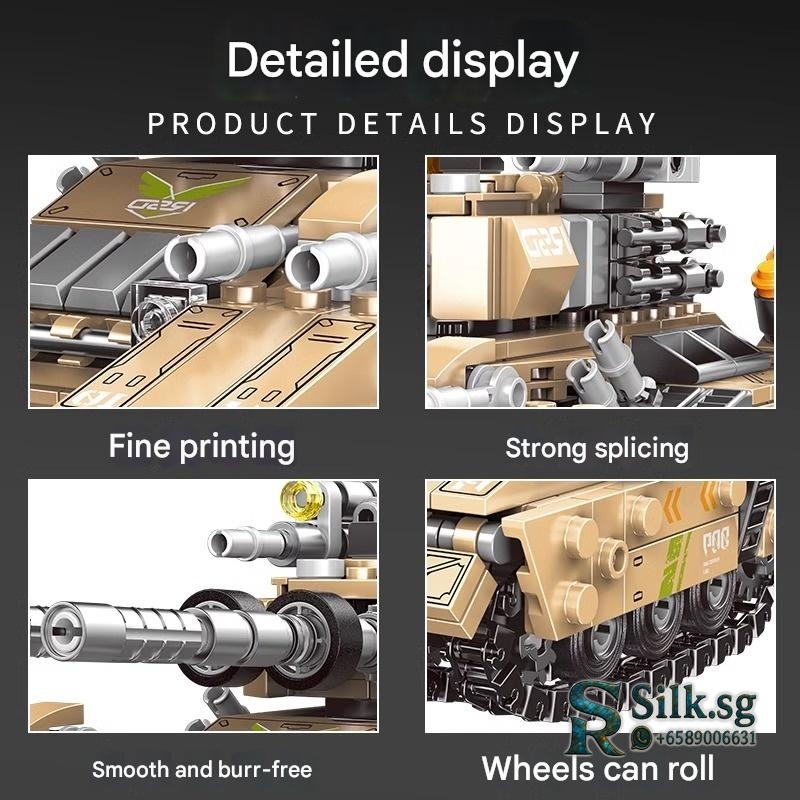 | Set | 8-in-1 T50 Cheetah Tank + 8 Minifigures, Battlefield Tank (8-in-1) 1048pcs, Cruiser Fleet (6-in-1) 1560pcs, DF41 Missile Vehicle 1467pcs / 4 Minifigures, Emperor Tank (8-in-1) 1048pcs, J15 Fighter Jet / 2056pcs, Land Battle Tank (8-in-1) 1000pcs 8 Armored Minifigures, Land Battle Tank (8-in-1) 955pcs, Large Land Battle Tank (8-in-1) 1700pcs 4 Minifigures, Leopard 2 Wind Tank / 2 Minifigures, Nearly 40cm / Black Land Battle Tank 1504pcs / 4 Armored Minifigures, Nearly 40cm Large Land Battle Tank / 1800+ pcs / 4 Minifigures, Night Tank (8-in-1) 800pcs 8 Minifigures, Snow Battle Tank (8-in-1) 955pcs, Snow Tank (8-in-1) 1000pcs 8 Armored Minifigures, T34 Empire Tank / 2 Minifigures, T80 Tank (8-in-1) 1900pcs 4 Minifigures, Upgraded Remote Control Land Battle Tank / 2 Minifigures / Gift Box, [Dynamic] DF41 Missile Vehicle 1467pcs / 4 Minifigures, [Dynamic] Enlarged 42cm Super Large Land Snow Tank, [Dynamic] Enlarged 43cm Super Large Land Battle Tank, [Static] Enlarged 42cm Super Large Land Snow Tank, [Static] Enlarged 43cm Super Large Land Battle Tank |