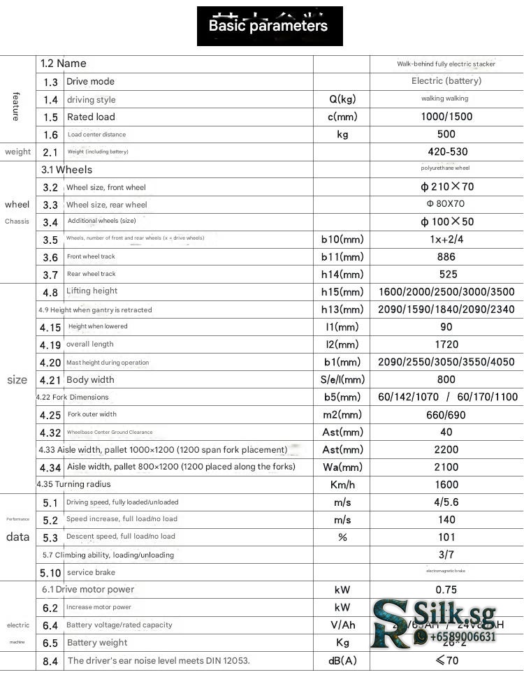 | Model | Full Electric Stacker, New Semi-Electric Stacker 2T 1.6m, New Semi-Electric Stacker 2T 2.5m, New Semi-Electric Stacker 2T 2m, New Semi-Electric Stacker 2T 3.5m, New Semi-Electric Stacker 2T 3m, Semi-Electric Stacker 2T 1.6m, Semi-Electric Stacker 2T 2.5m, Semi-Electric Stacker 2T 2m, Semi-Electric Stacker 2T 3.5m, Semi-Electric Stacker 2T 3m, Stand-On Electric Stacker 1.5T 1.6m, Stand-On Electric Stacker 1.5T 2.5m, Stand-On Electric Stacker 1.5T 2m, Stand-On Electric Stacker 1.5T 3.5m, Stand-On Electric Stacker 1.5T 3m, Stand-On Electric Stacker 1.5T 4m, Stand-On Electric Stacker 2T 1.6m, Stand-On Electric Stacker 2T 2.5m, Stand-On Electric Stacker 2T 2m, Stand-On Electric Stacker 2T 3.5m, Stand-On Electric Stacker 2T 3m, Steel Stand-On Electric Stacker 2.5T 2.5m, Steel Stand-On Electric Stacker 2.5T 2m, Steel Stand-On Electric Stacker 2.5T 3.5m, Steel Stand-On Electric Stacker 2.5T 3m, Steel Stand-On Electric Stacker 2T 2.5m, Steel Stand-On Electric Stacker 2T 2m, Steel Stand-On Electric Stacker 2T 3.5m, Steel Stand-On Electric Stacker 2T 3m, Steel Stand-On Electric Stacker 2T 4.5m, Steel Stand-On Electric Stacker 2T 4m, Steel Stand-On Electric Stacker 3T 2.5m, Steel Stand-On Electric Stacker 3T 2m, Steel Stand-On Electric Stacker 3T 3.5m, Steel Stand-On Electric Stacker 3T 3m, Walkie Electric Stacker 1.5T 1.6m, Walkie Electric Stacker 1.5T 2.5m, Walkie Electric Stacker 1.5T 2m, Walkie Electric Stacker 1.5T 3.5m, Walkie Electric Stacker 1.5T 3m |