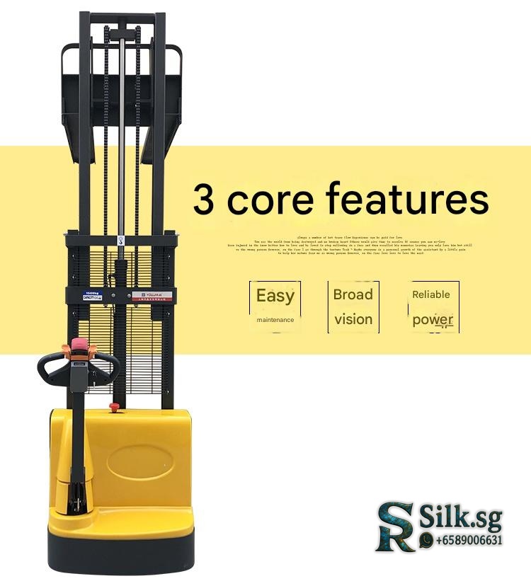 Boost your warehouse efficiency with this fully electric stacker. Its compact design and powerful 3-ton lift make loading and unloading effortless. Perfect for tight aisles, it offers a smooth, operator-friendly ride. Experience durable, reliable performance that gets the job done right.